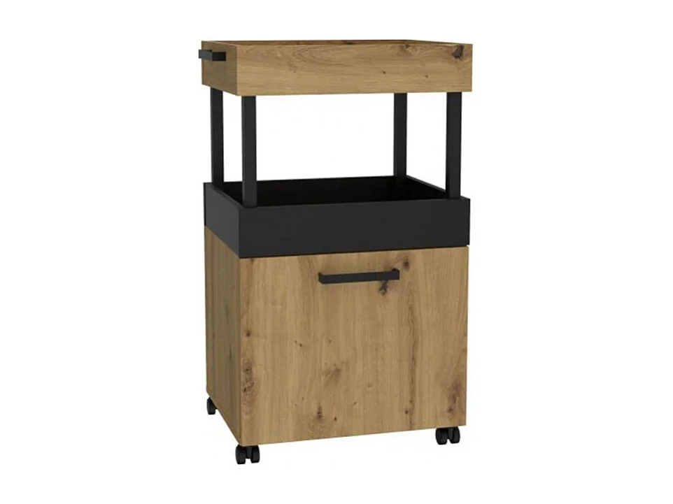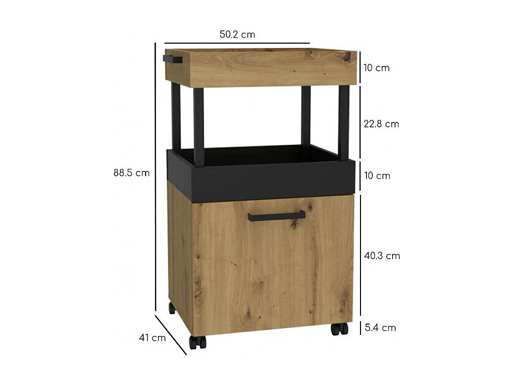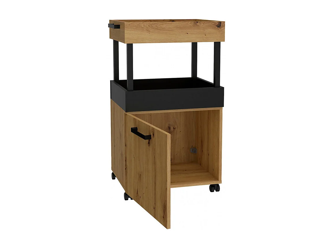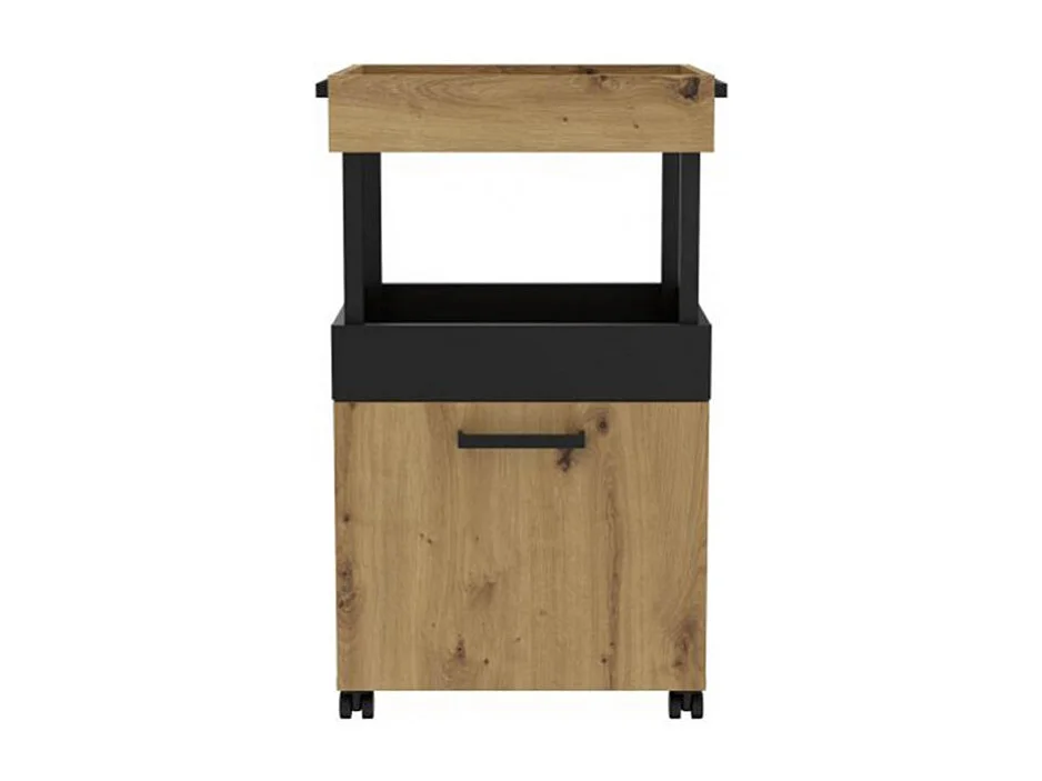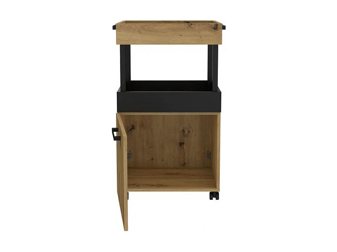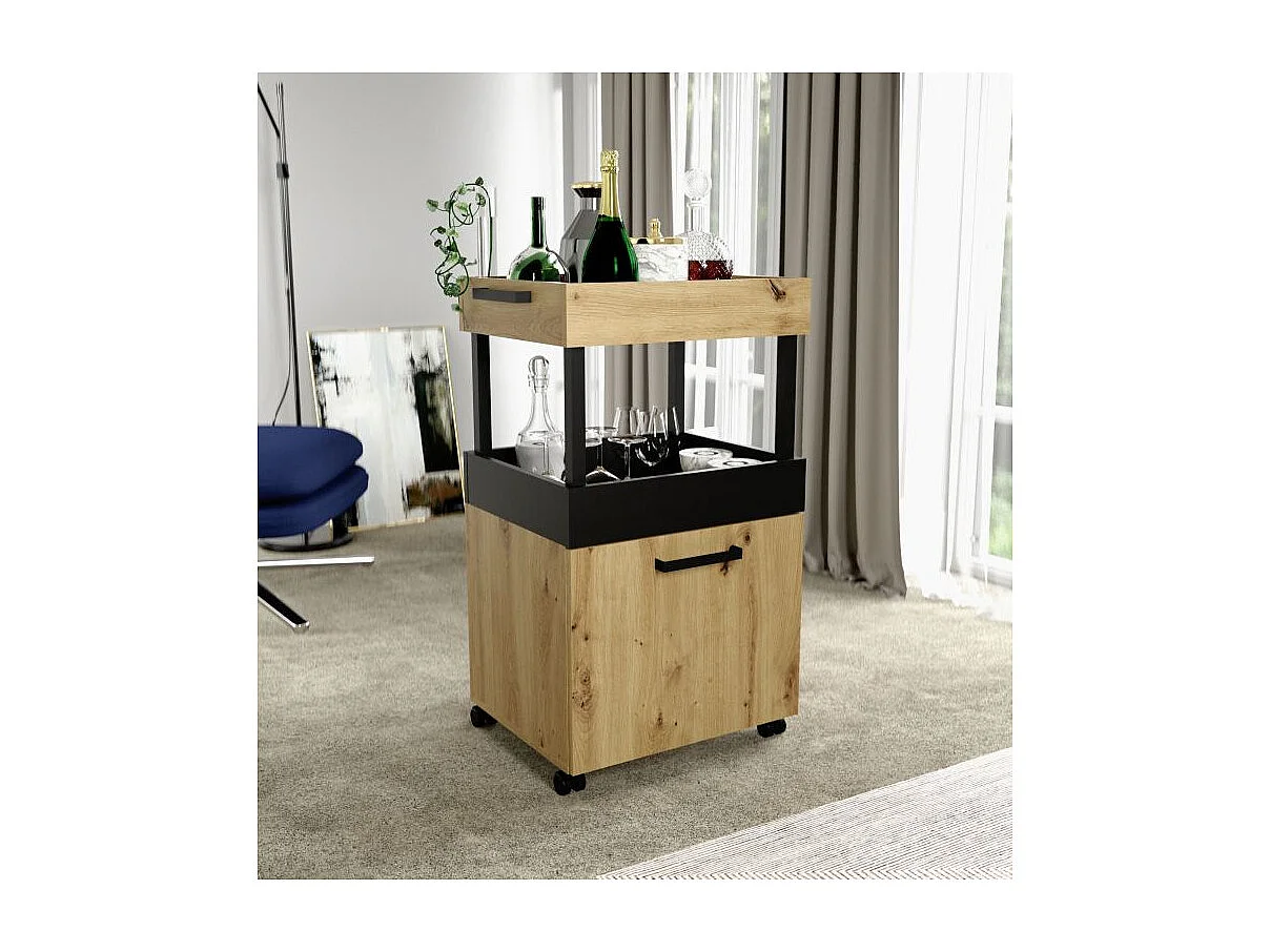 Desserte à roulettes 2 plateaux 1 porte décor bois et noir - BENJI