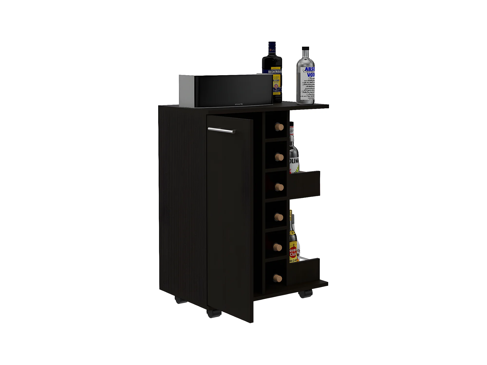 Meuble de bar pivotant avec 3 portes dont 2 portes en verre, étagères ouvertes inclus, corps noir - 120x40x103cm