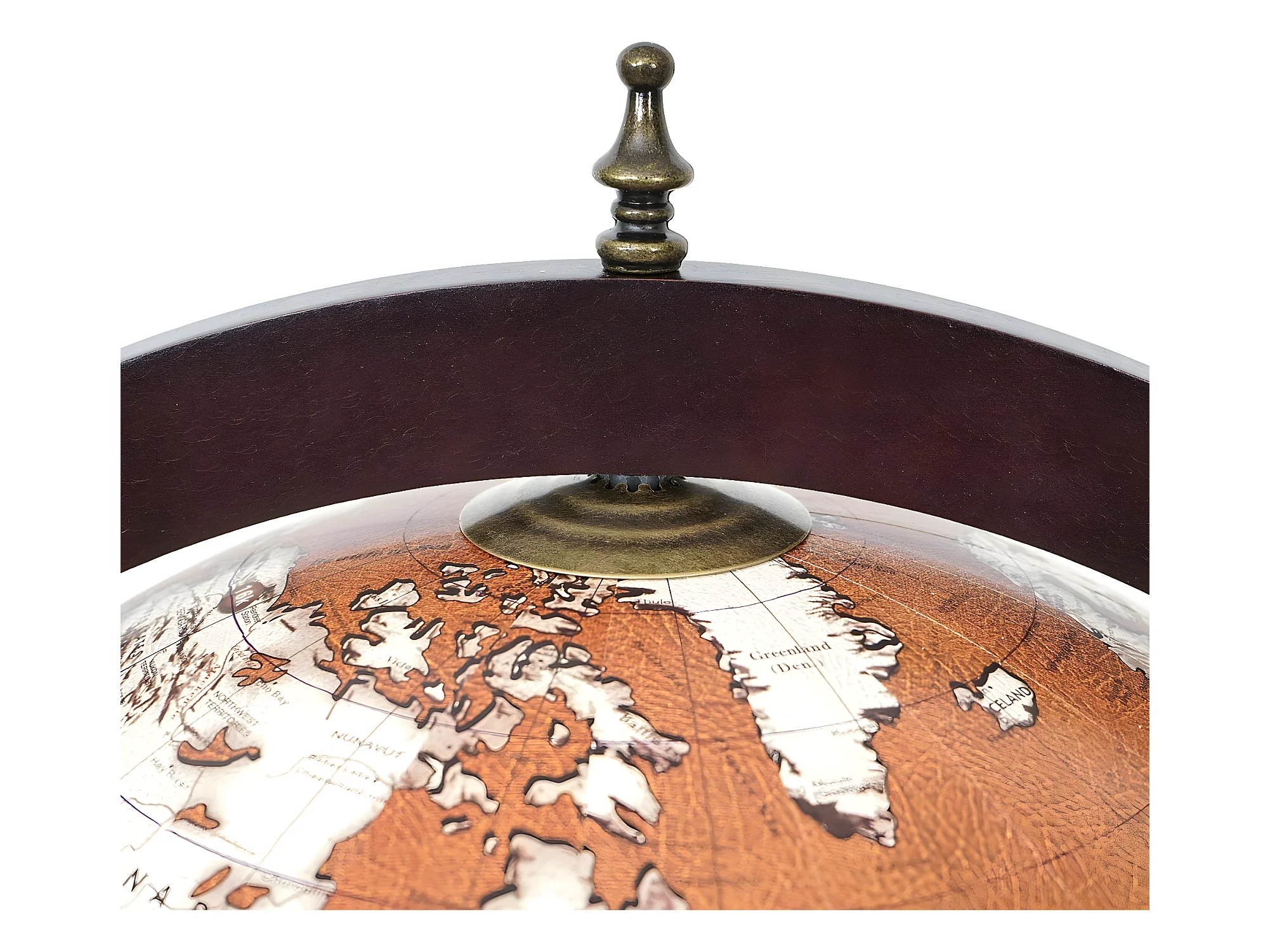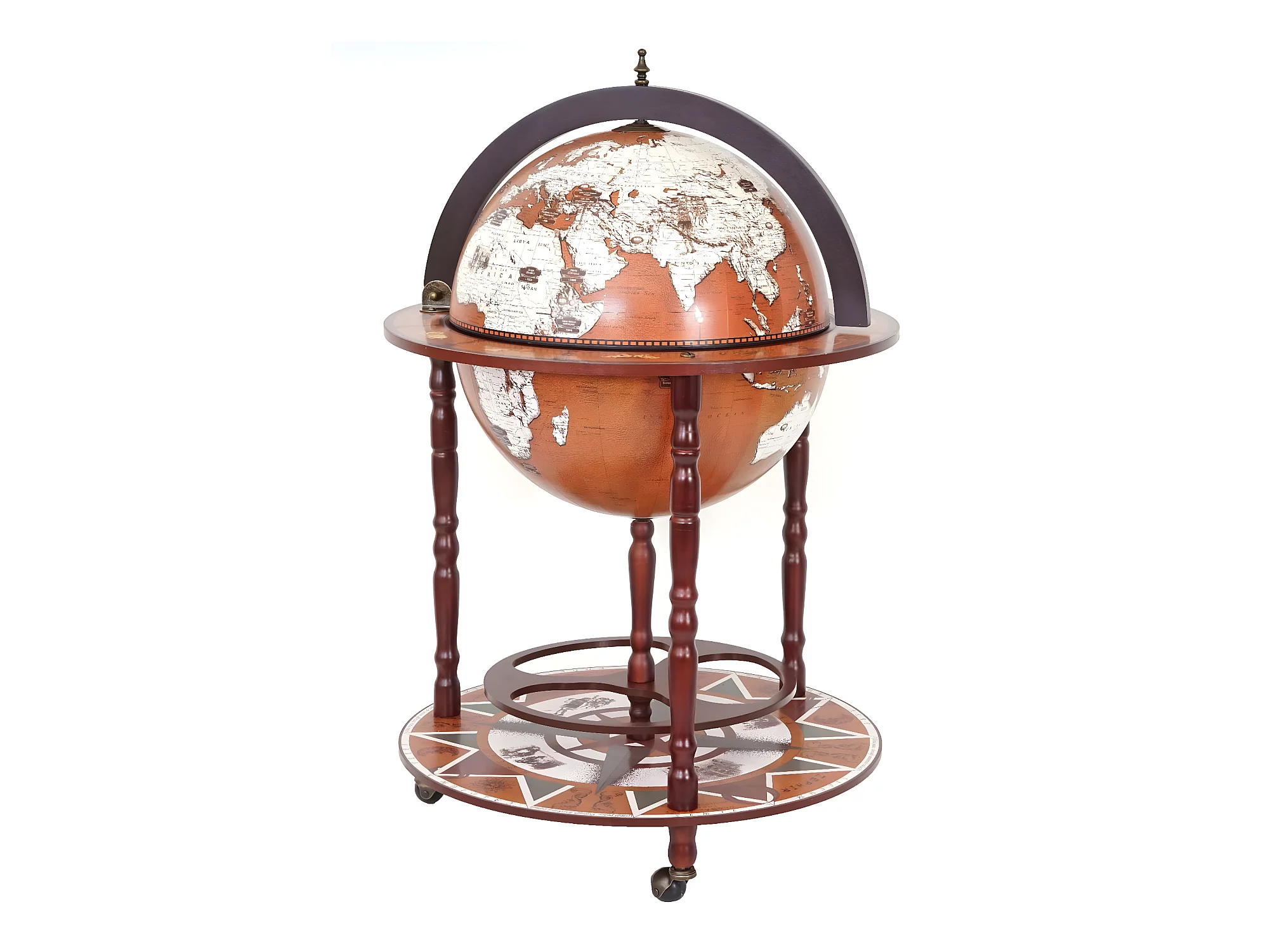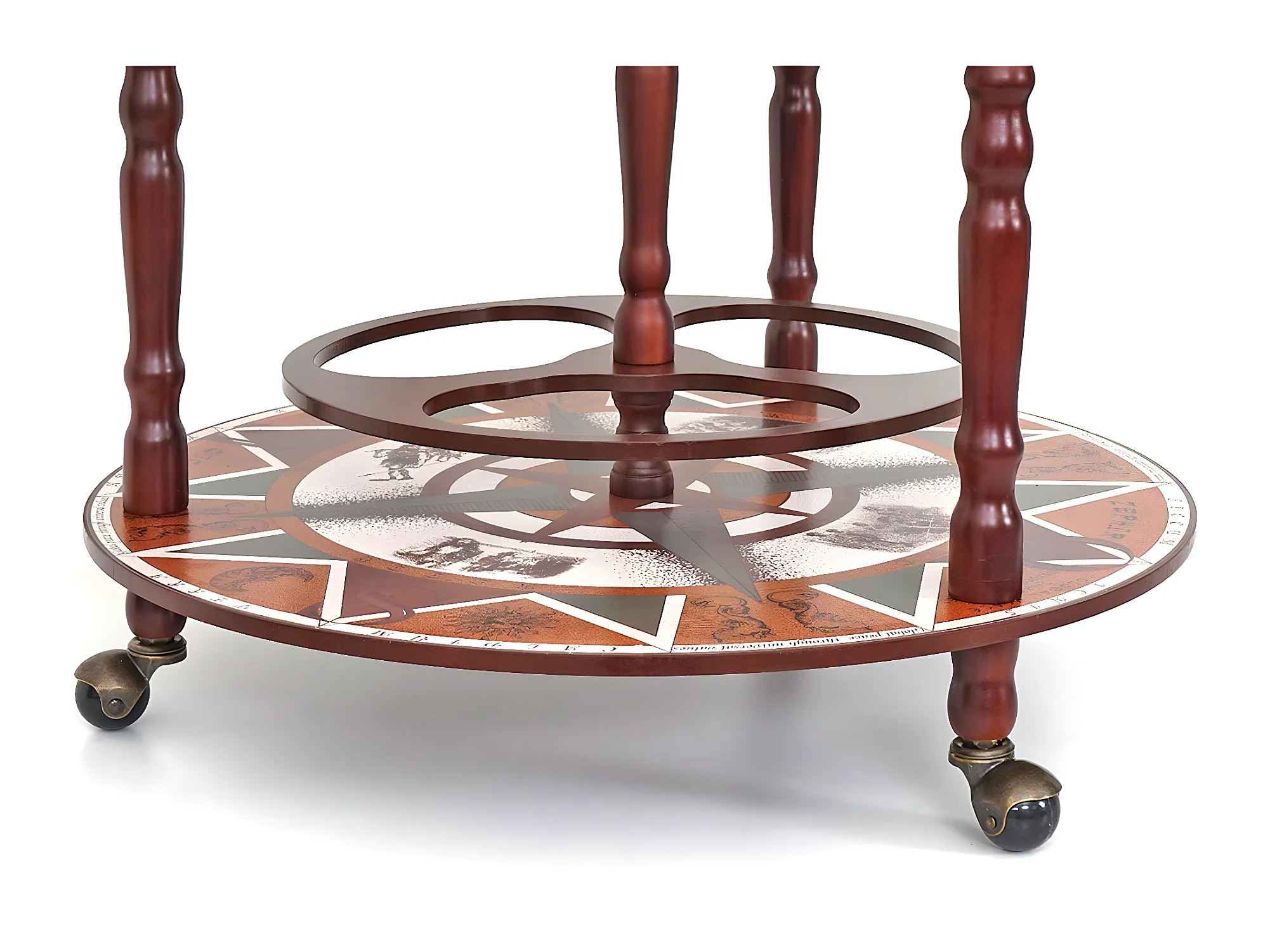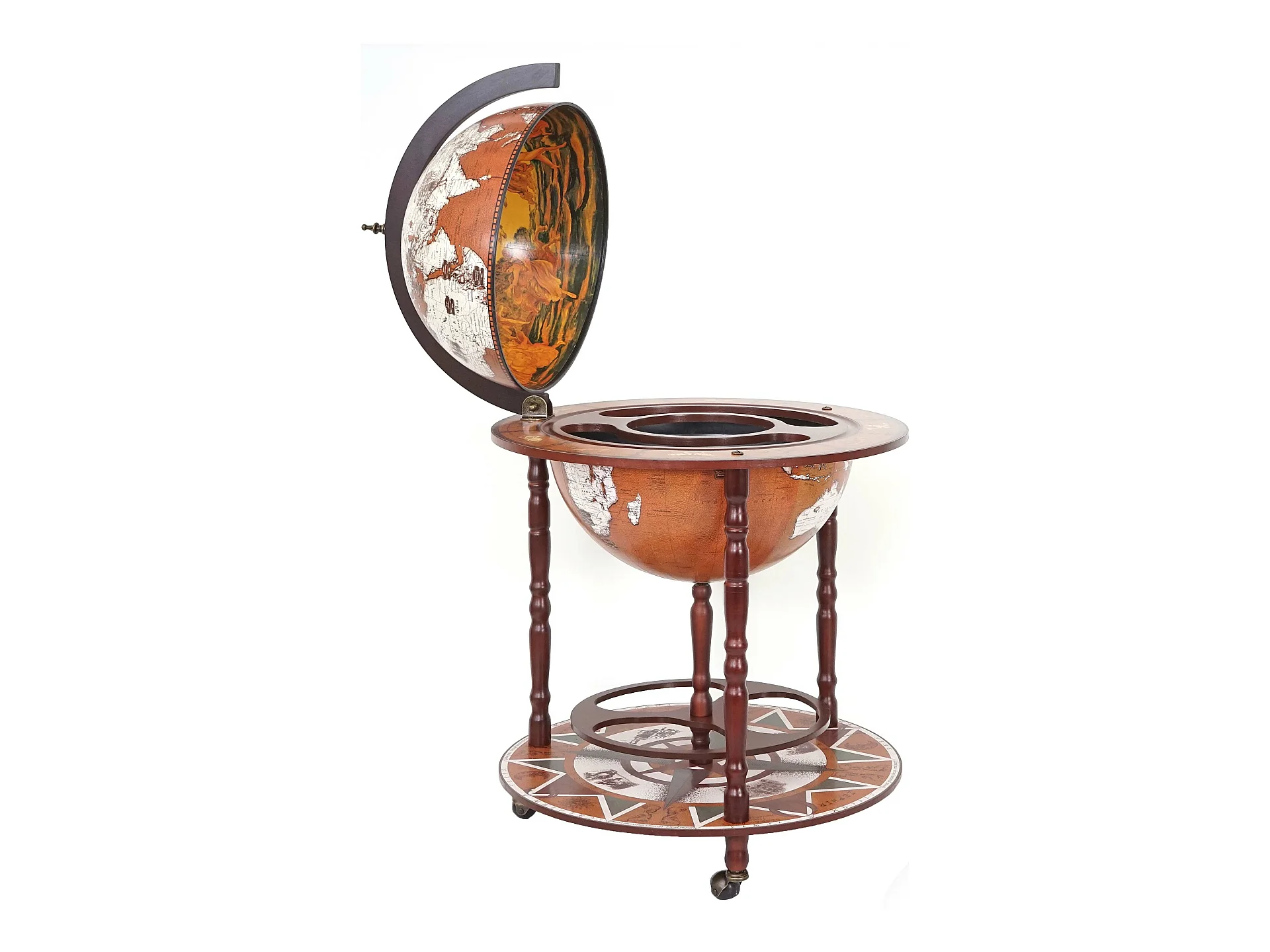 Bar de salon HWC-D86, minibar, étagère de vin, globe terrestre Ø 45cm, roulant, bois d'eucalyptus