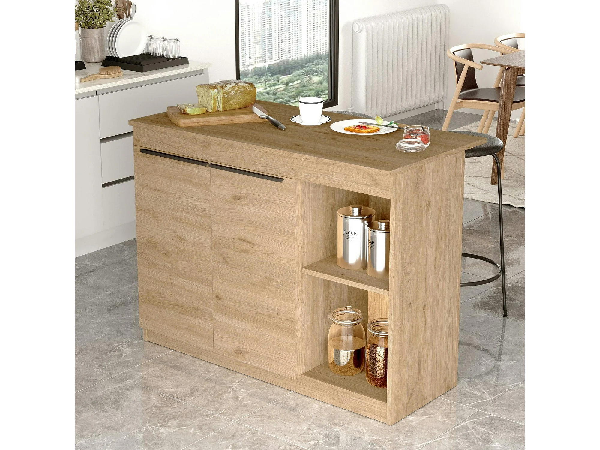 Bar séparation cuisine ouverte effet bois, 2 portes MARFA