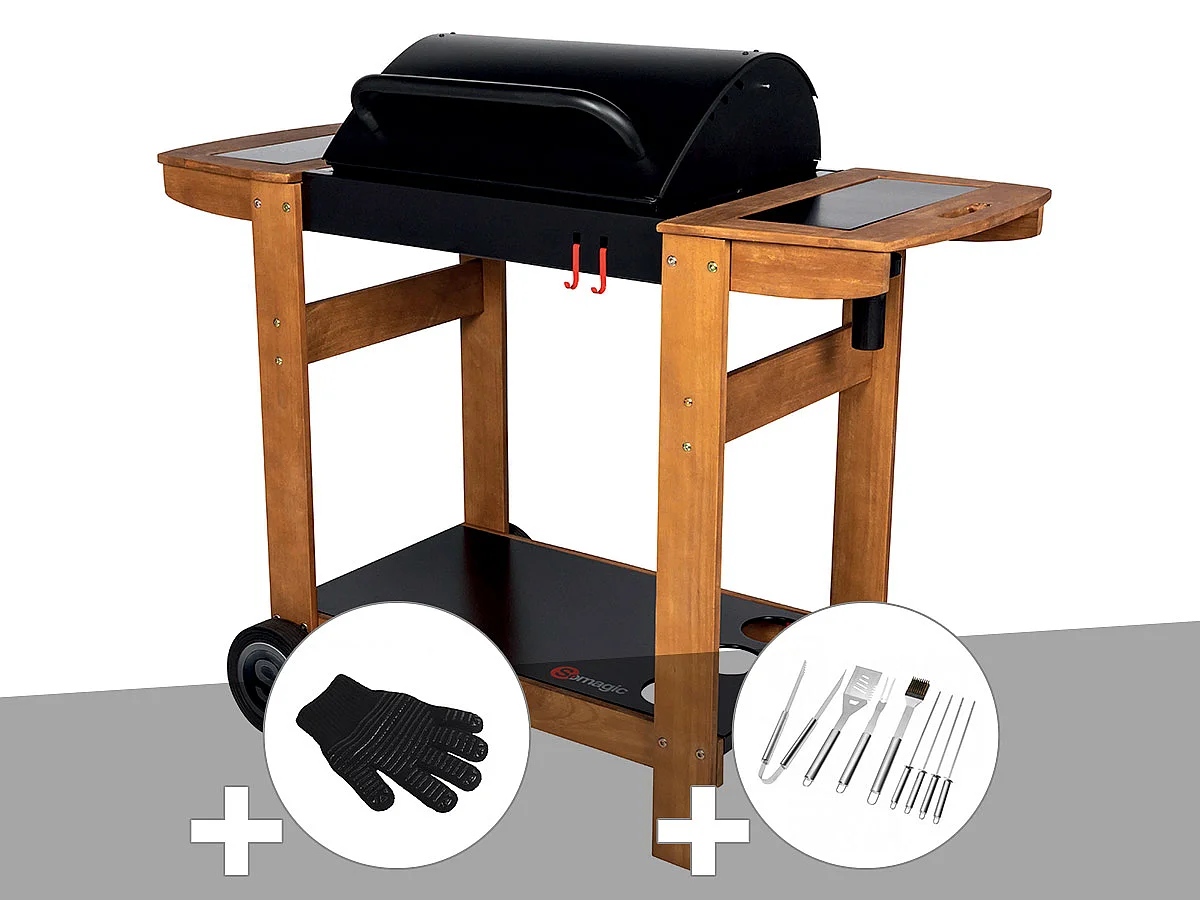 Barbecue à charbon Indiana + Gant + Malette 8 accessoires