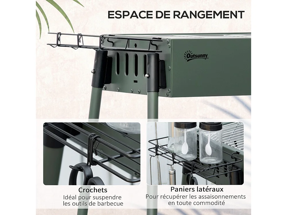 Barbecue à charbon portable Outsunny avec paniers à épices et crochets