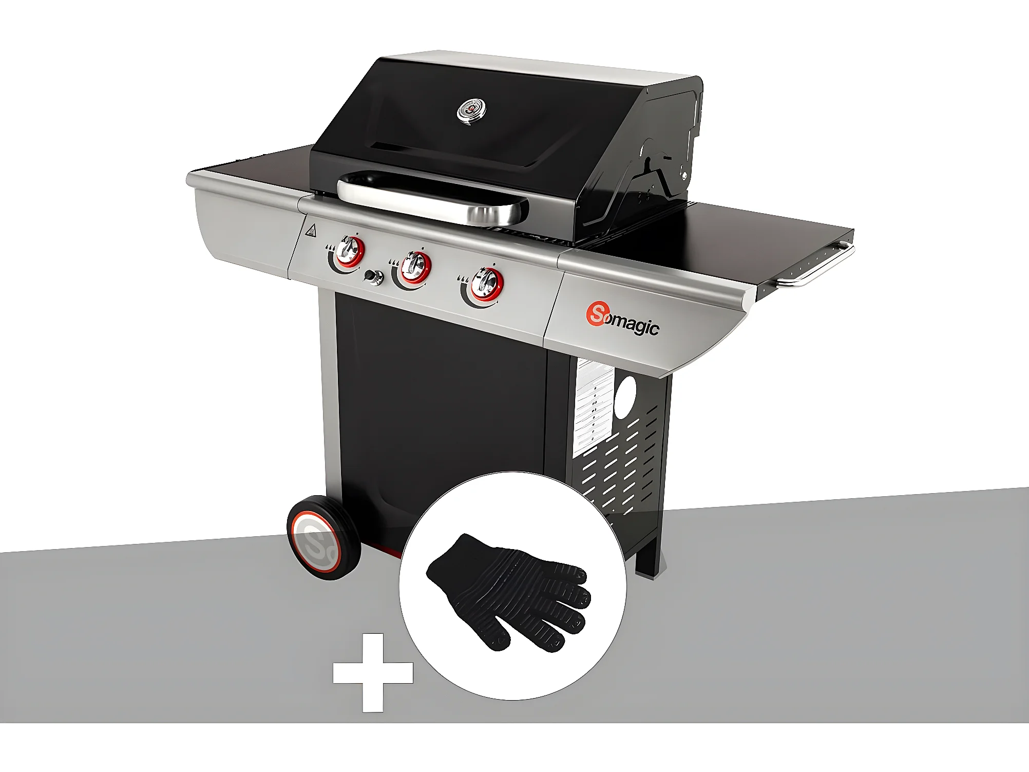Barbecue à gaz avec chariot 3 brûleurs Manhattan 300S - Somagic + Gant de protection