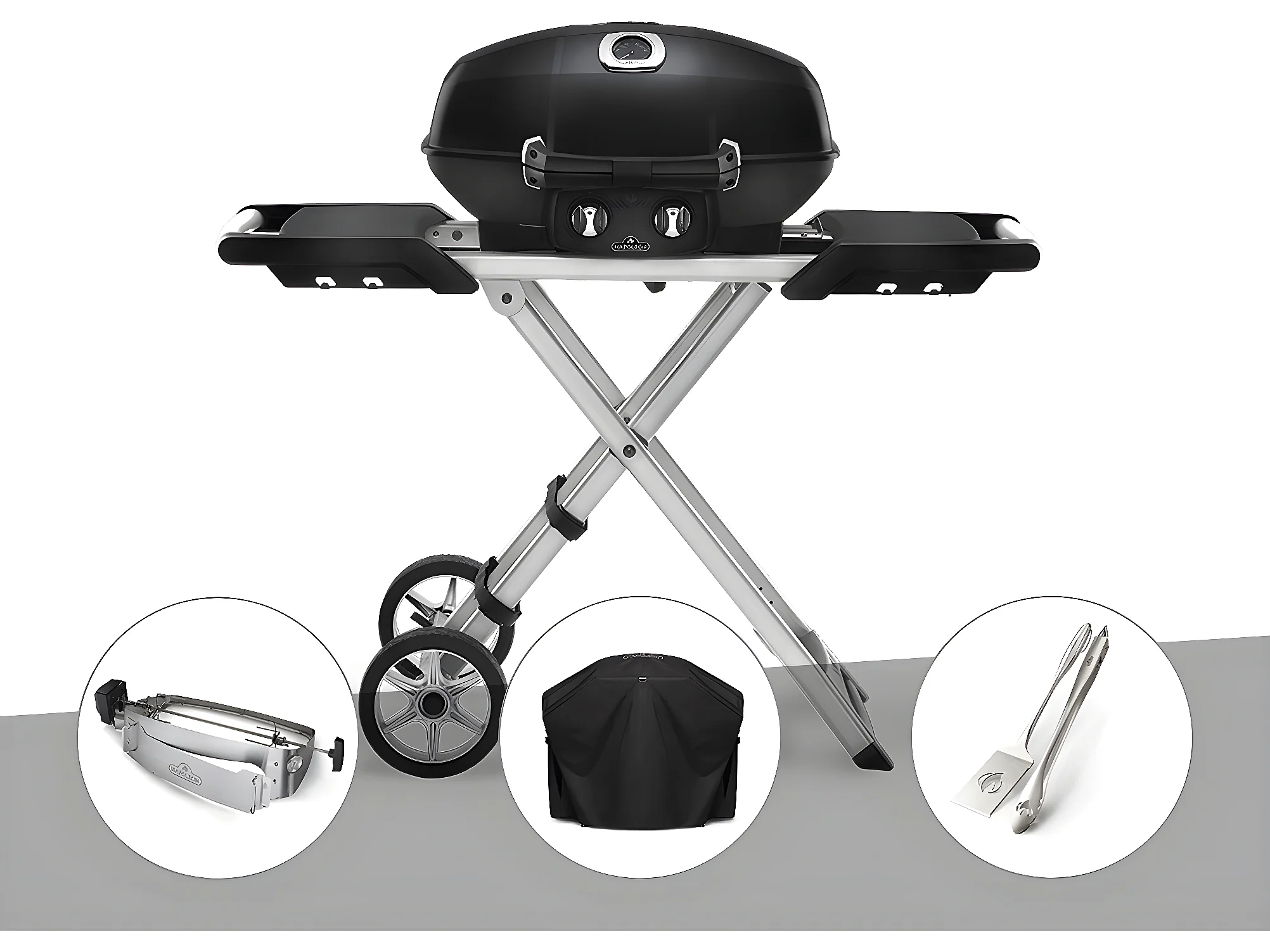 Barbecue à gaz Travel Q Pro 285X + Rôtissoire + Housse + Ensemble 2 ustensiles - Napoleon