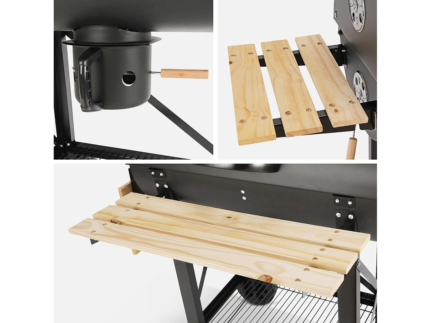 Barbecue américain charbon de bois - Serge noir - Smoker américain avec aérateurs. récupérateur de cendres. fumoir