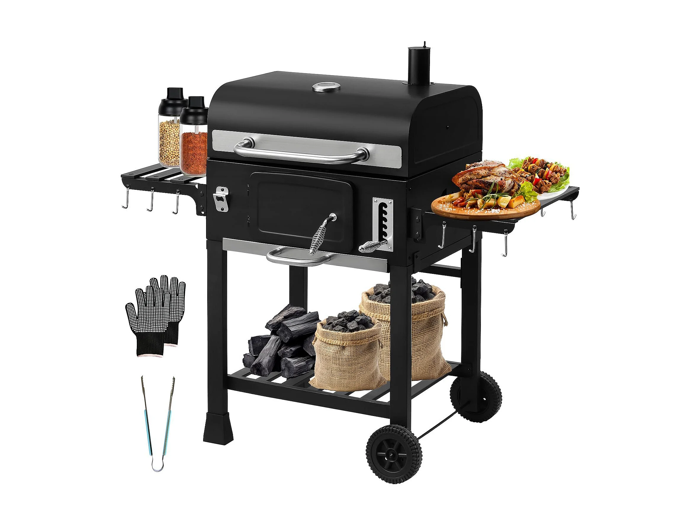 Chariot barbecue au charbon XXL, grand fumoir noir haut de gamme