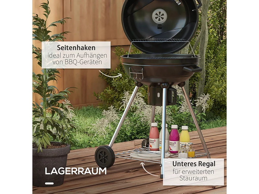 Barbecue boule grille Ø54 cm grille de maintien au chaud étagère tiroir à cendres thermomètre