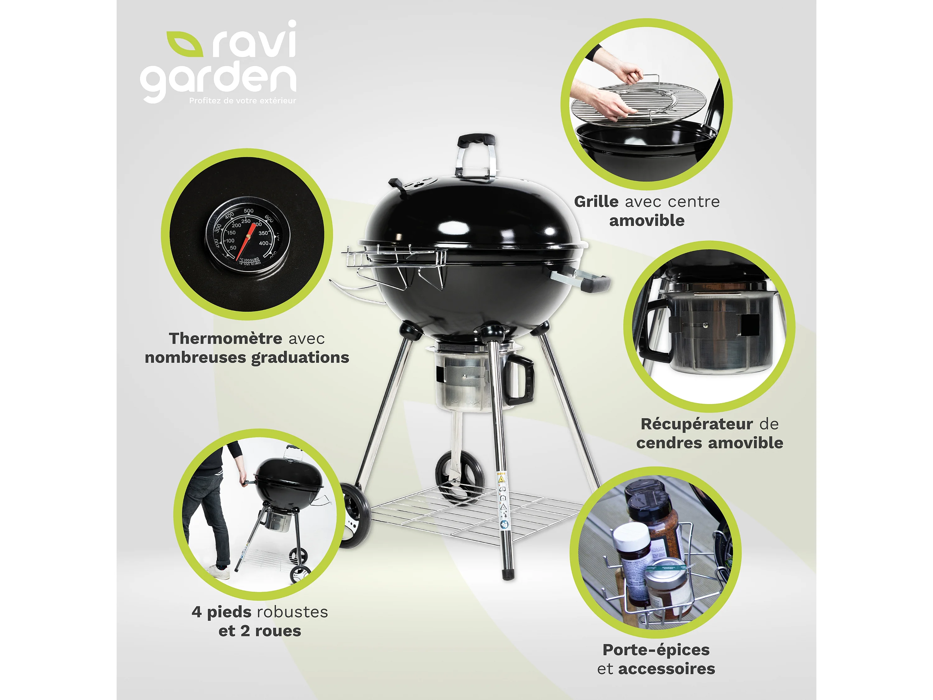 Barbecue Charbon de Bois 57 cm avec Couvercle | Barbecue Rond Charbon | BBQ Charbon 4 Pieds | Idéal pour 8 à 12 personnes