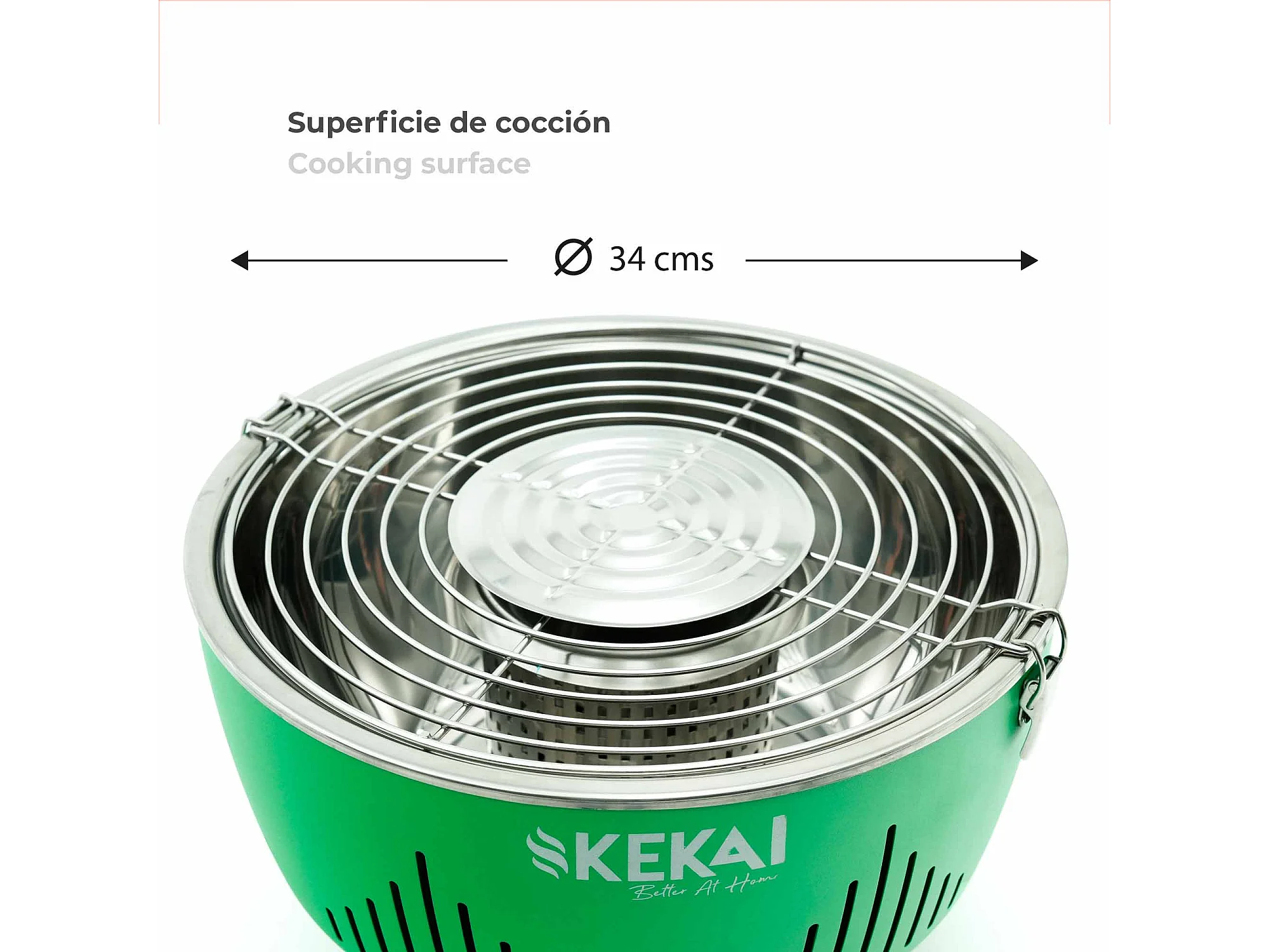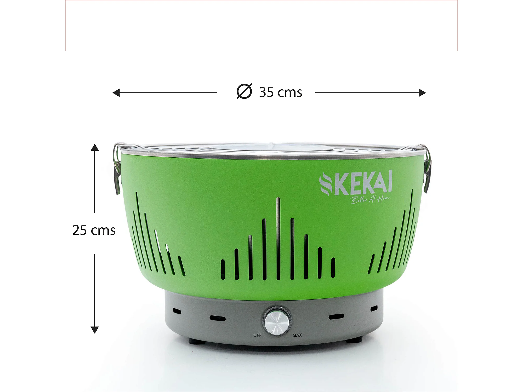 Barbecue de Table Portable au Charbon Kekai Crater 35x35x25 cm Vert Cuve Récupération Graisses Ventilateur Réglable