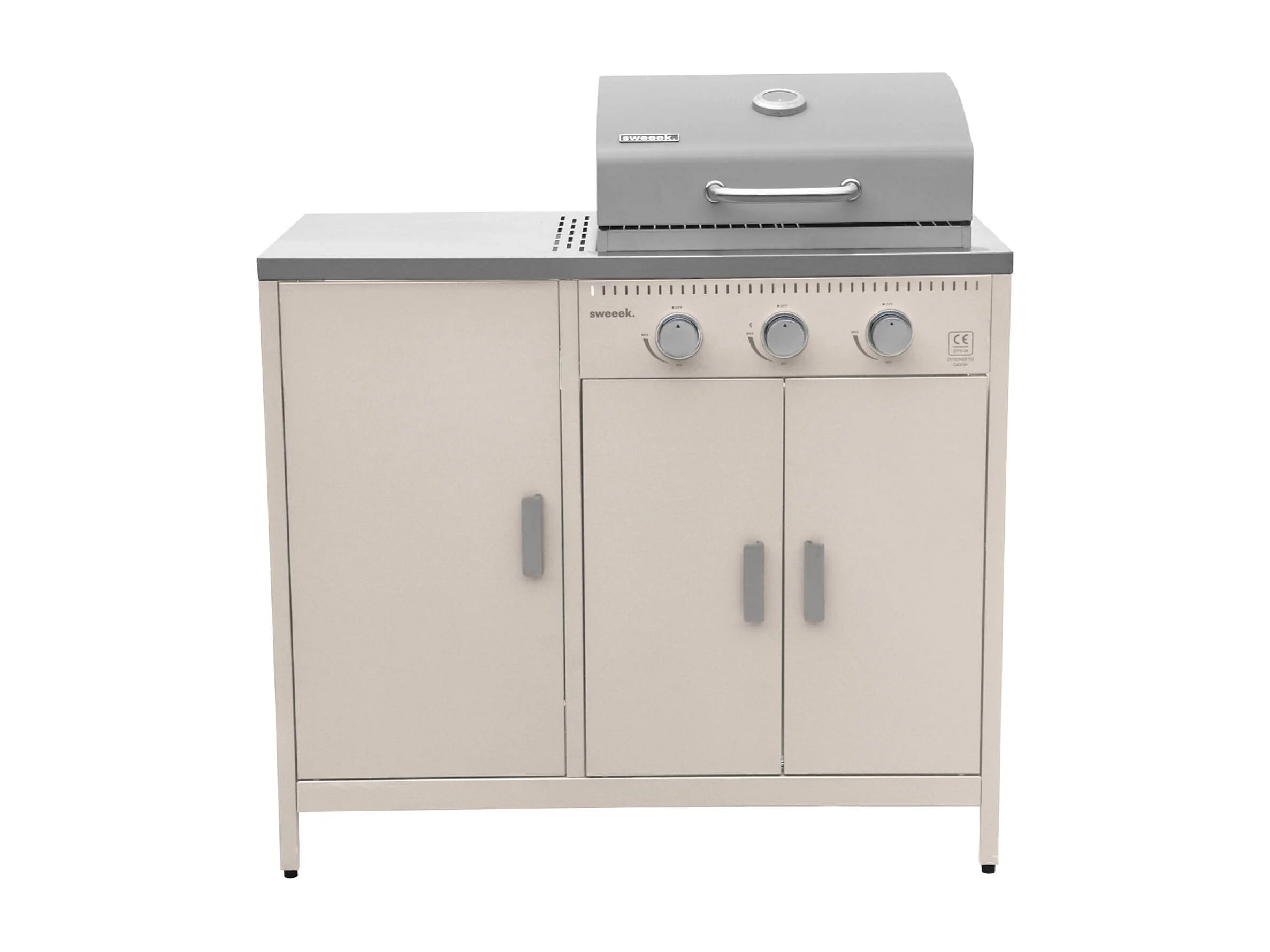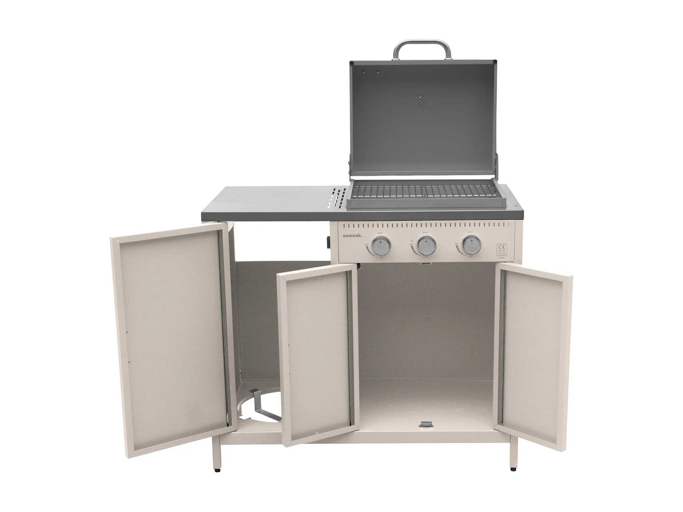 Barbecue gaz 3 brûleurs. beige. 3 portes et 2 espaces de rangement