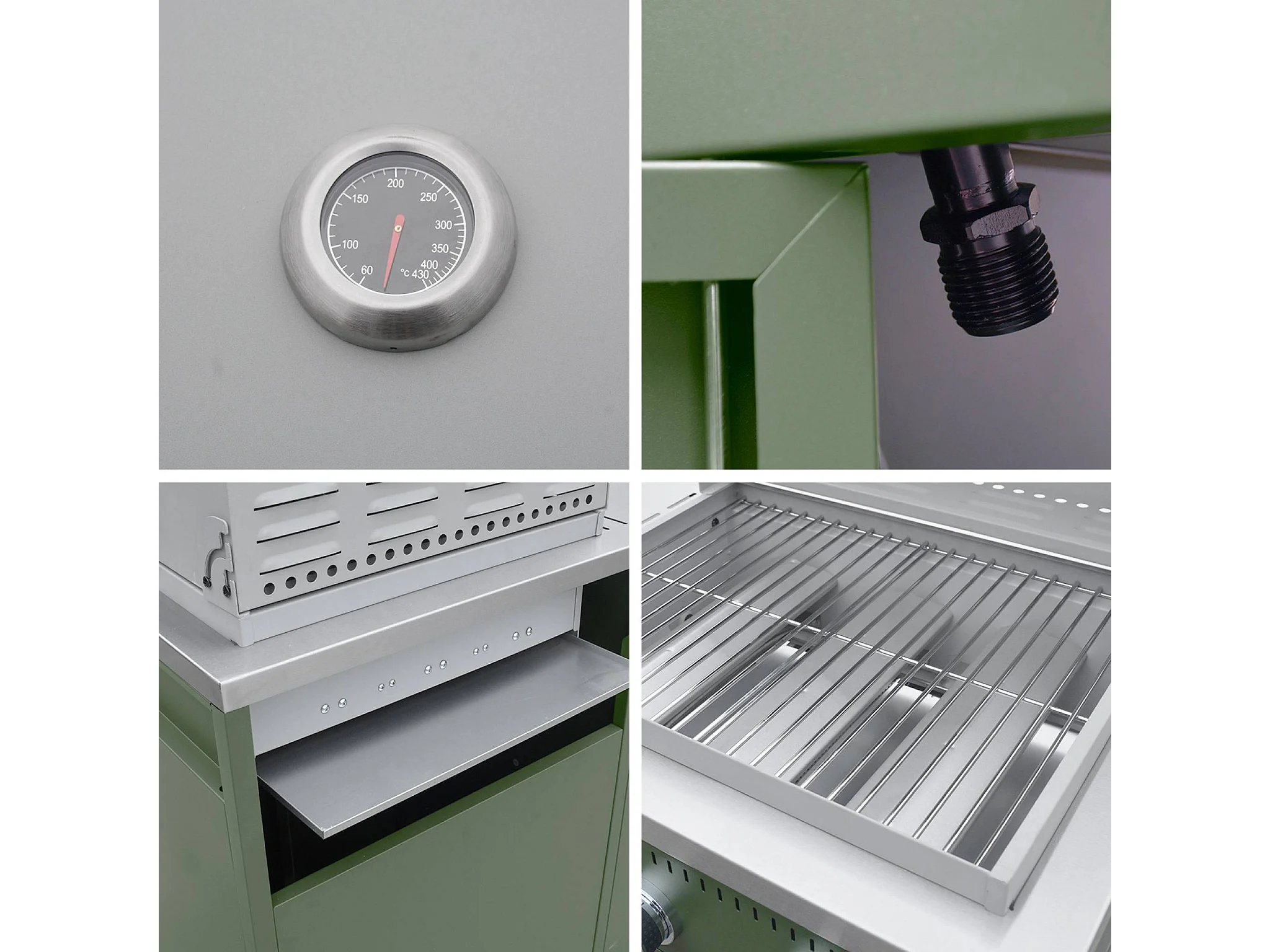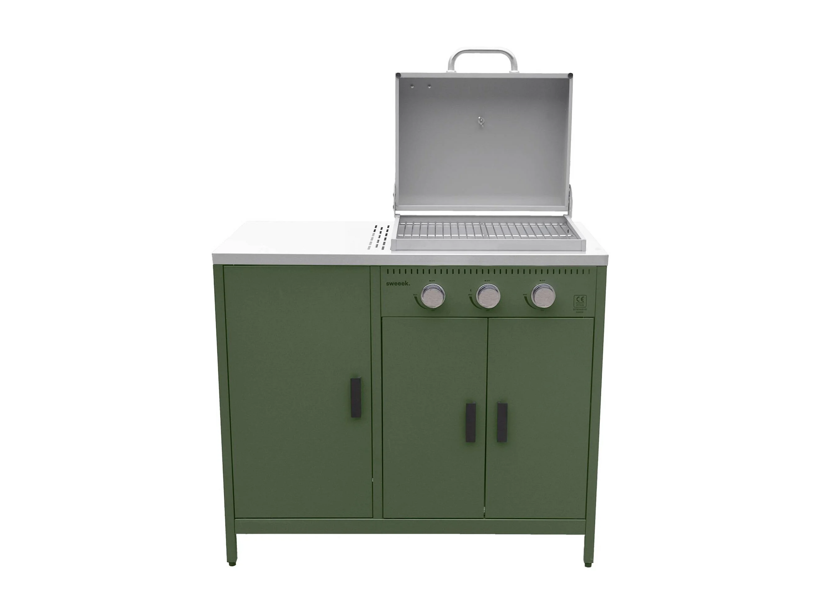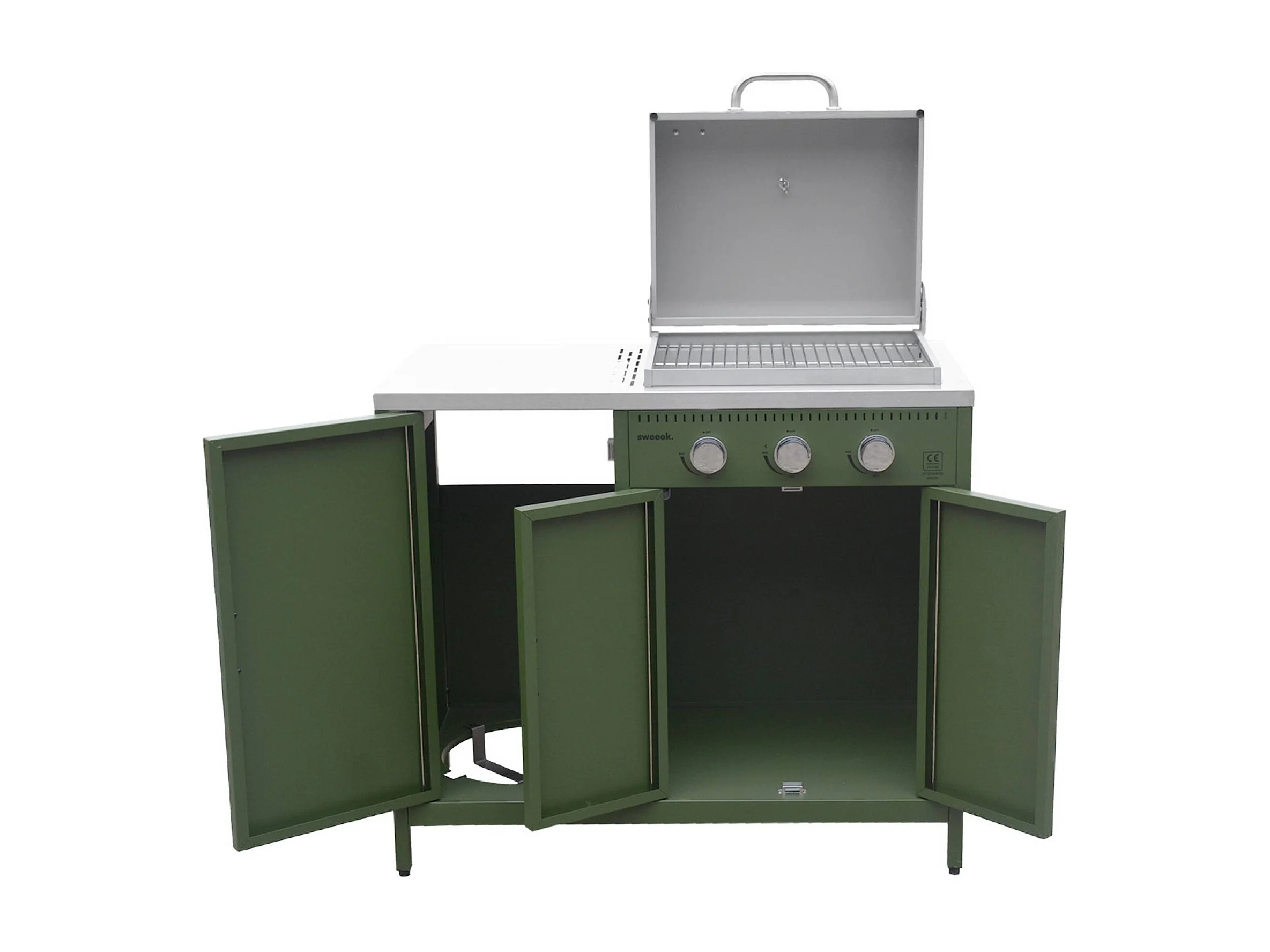 Barbecue gaz 3 brûleurs. vert. 3 portes et 2 espaces de rangement