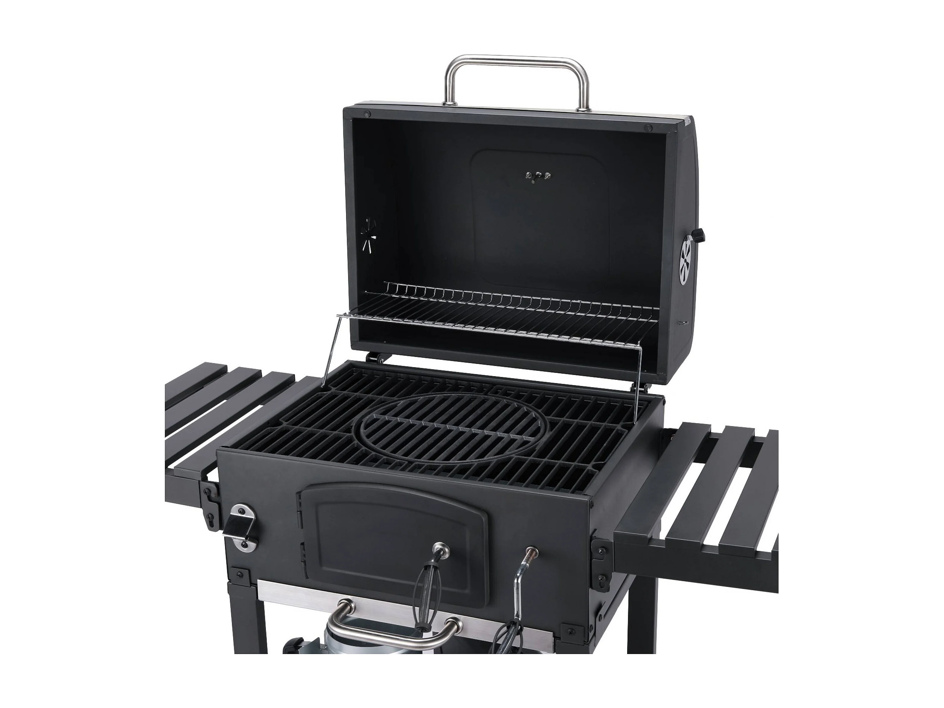 Barbecue Grill charbon de bois noir - Fumoir avec récupérateur de cendres. aérateurs. bac charbon ajustable. tablettes rabattables et housse
