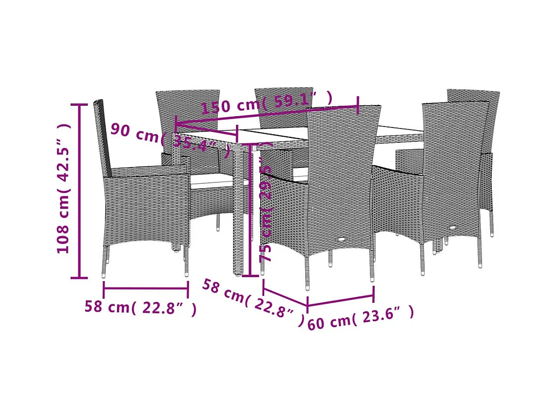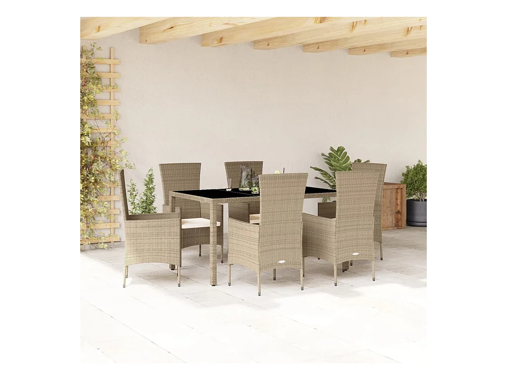 Barnesville Ensemble à manger de jardin et coussins 7 pcs beige poly rotin