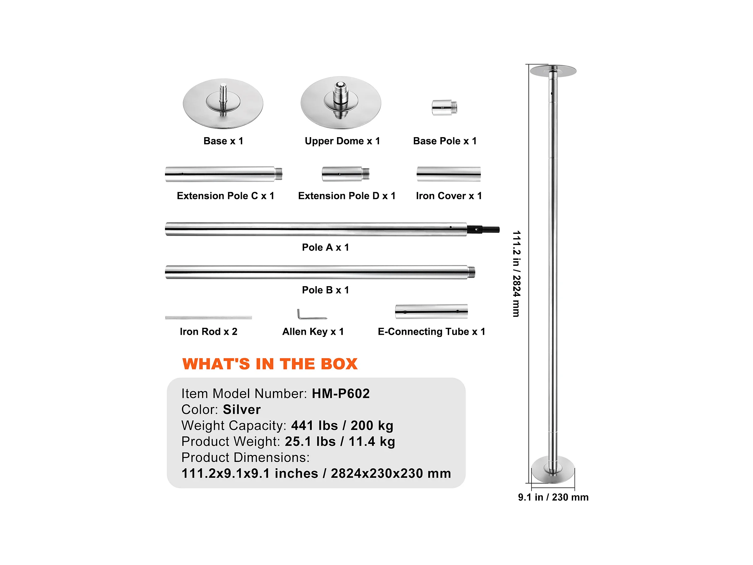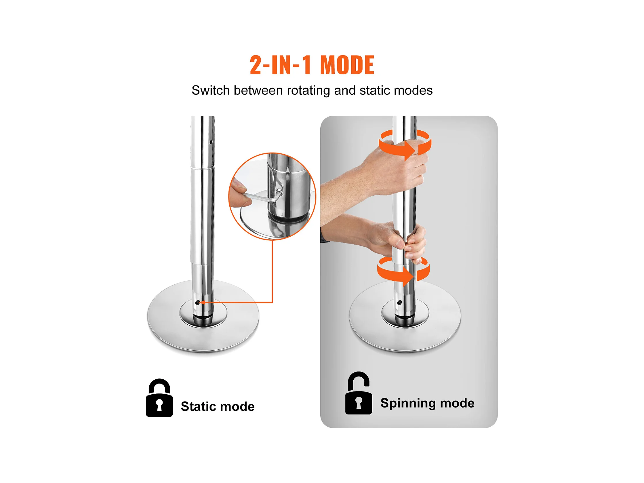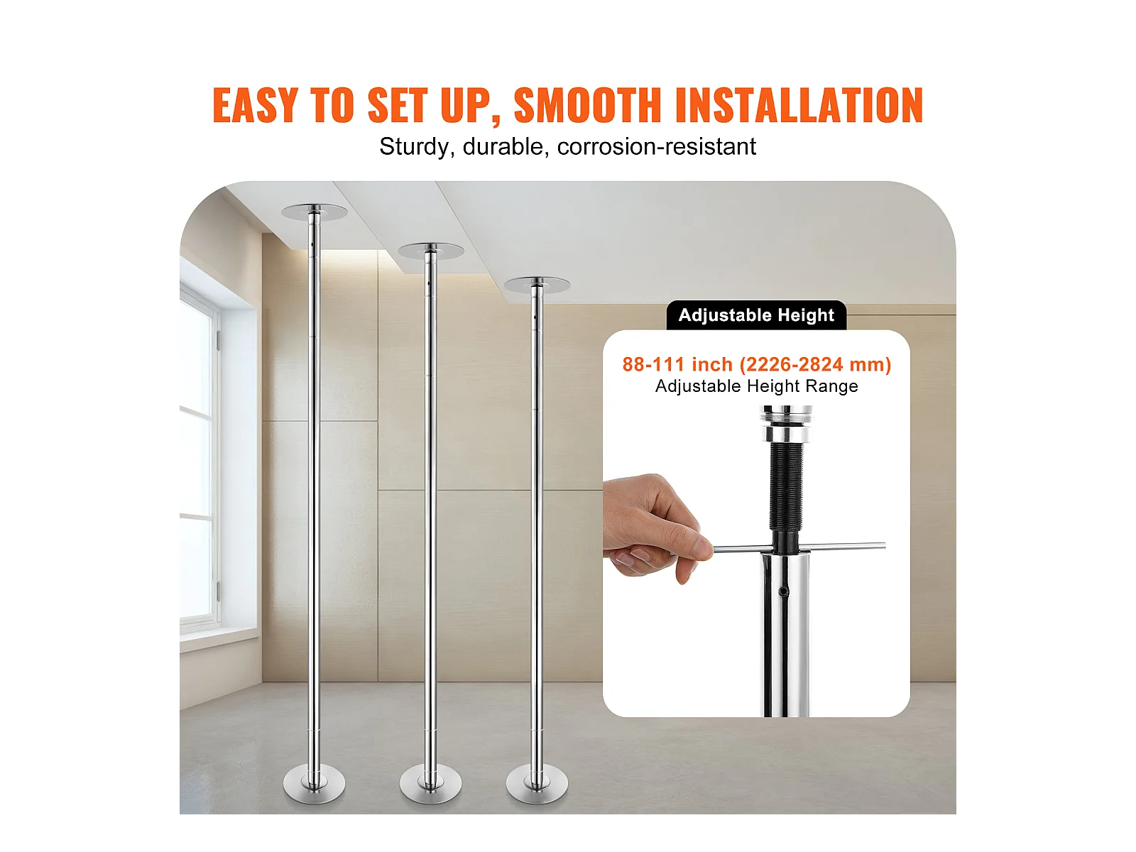 Barre de Danse Professionnelle SucceBuy, Kit de Barre Statique Rotative, Barre en Acier Argenté de 45 mm, Portable et Amovible