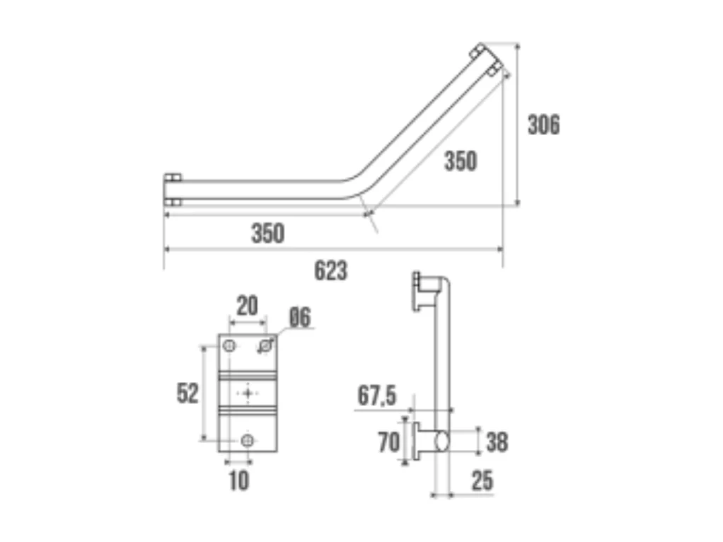 Barre de maintien coudée PMR PELLET Design 135° aluminium anodisé brillant caches résine chromée