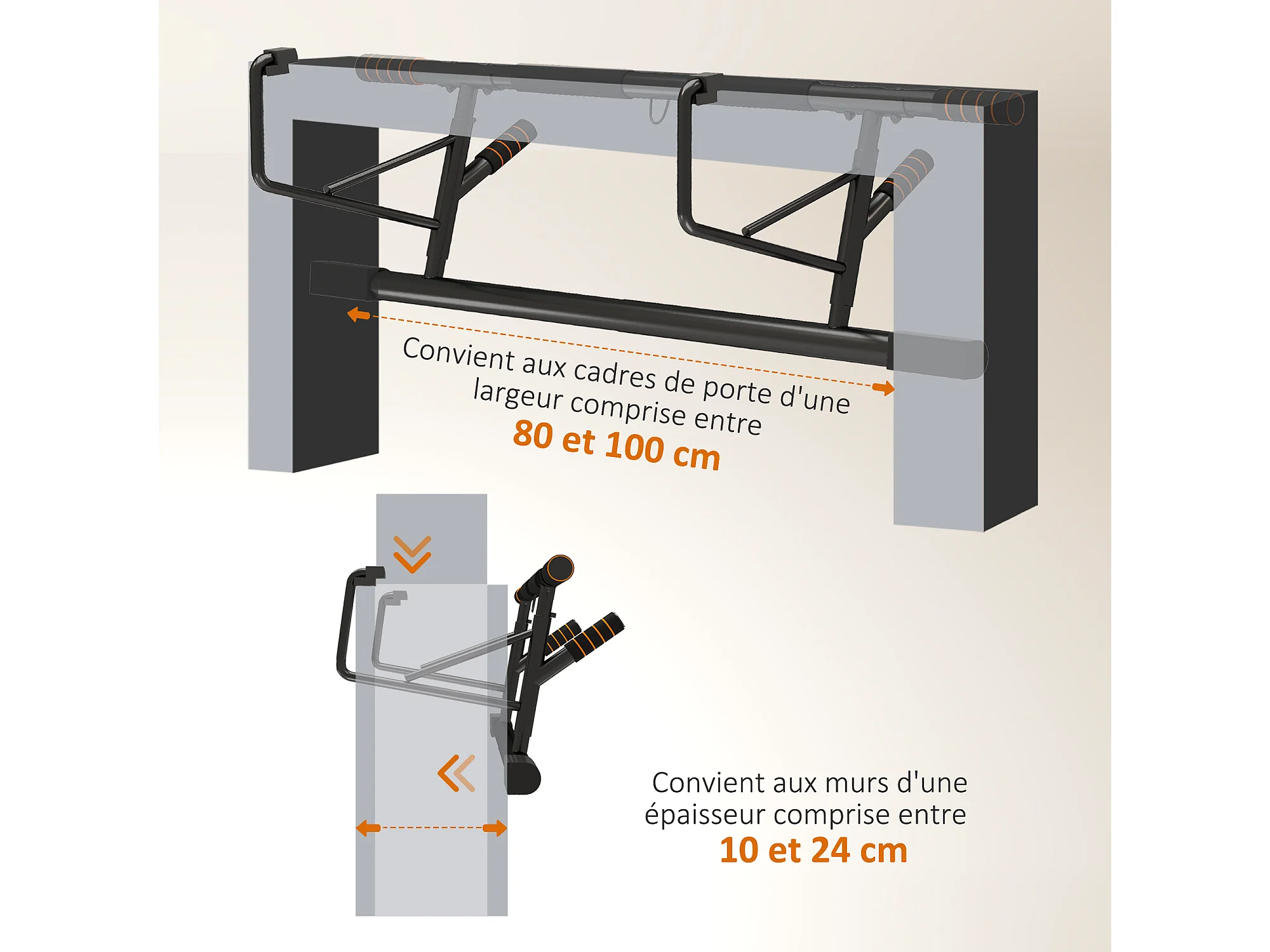 Barre de traction porte 2 bandes de résistance incluses max. 150 Kg acier orange noir