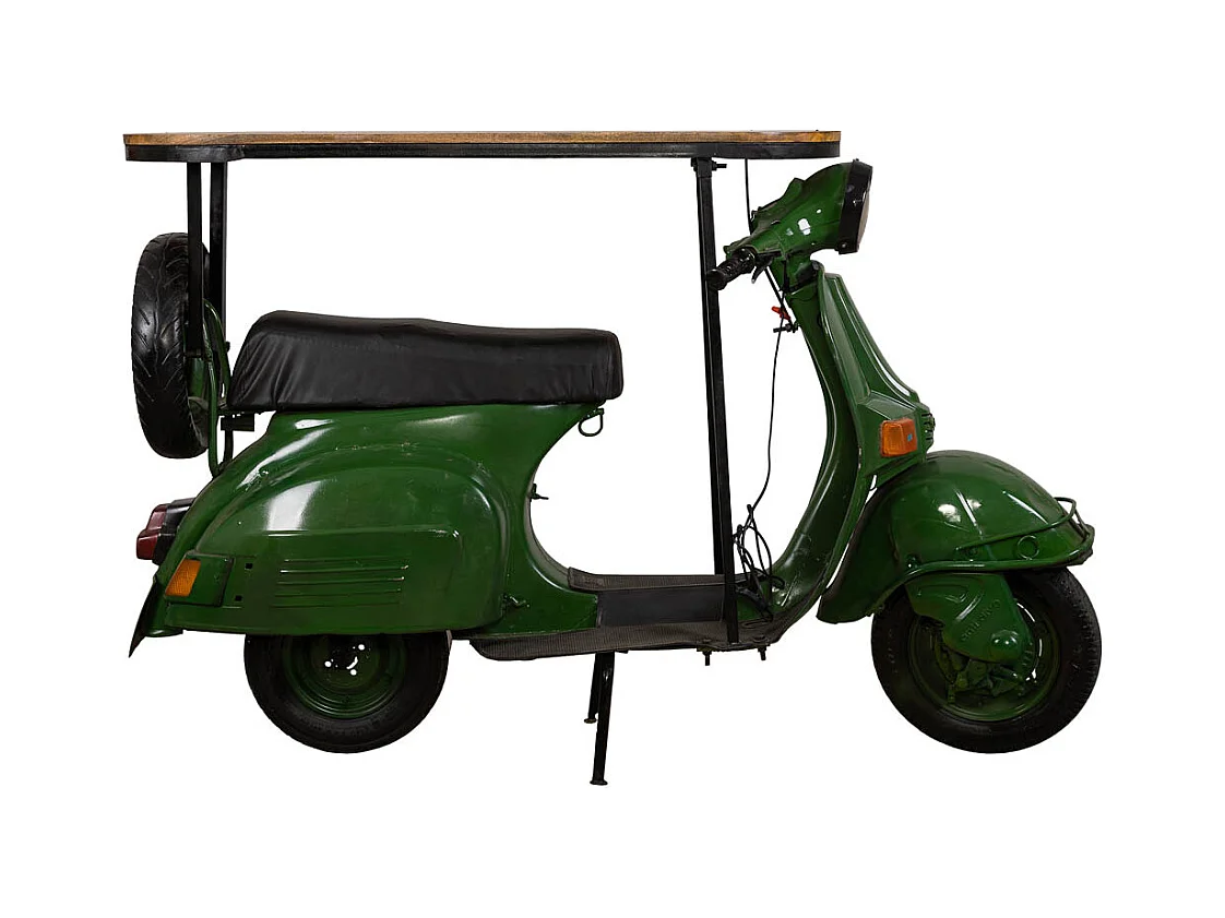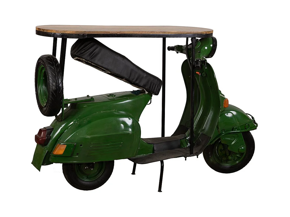 Bar porte-bouteilles moto vespa en métal et bois vert 185x66x115h