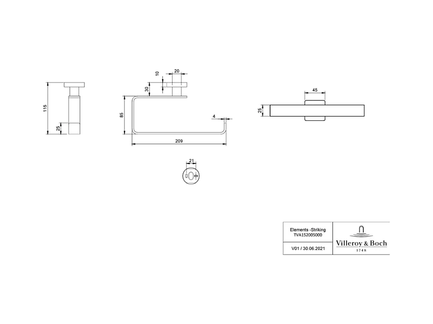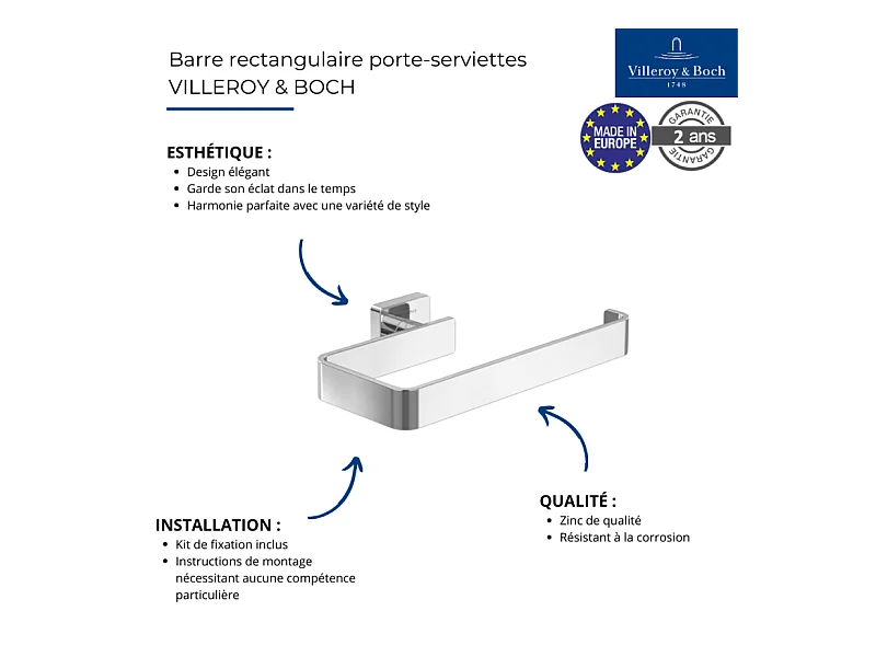 Barre rectangulaire porte-serviettes VILLEROY ET BOCH Elements - Striking aspect or brossé