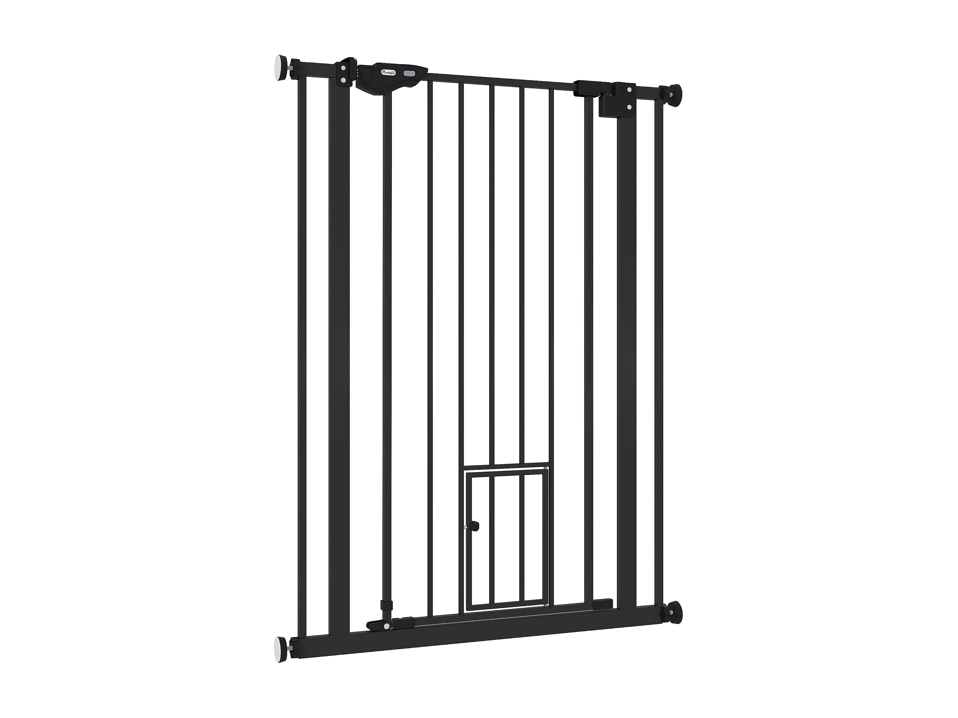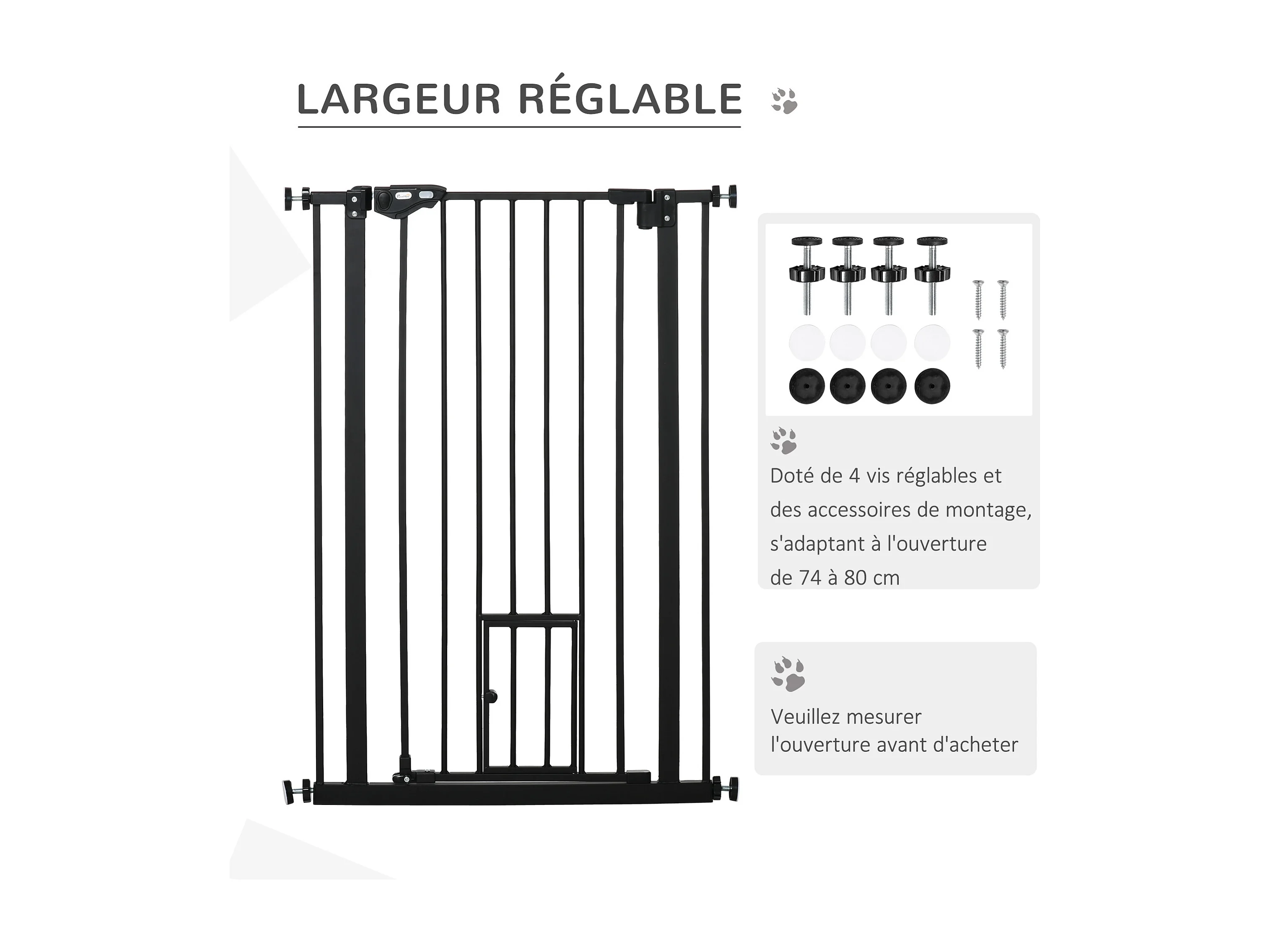 Barrière de sécurité animaux - longueur réglable dim. 74-80 cm - porte double verrouillage, ouverture double sens, petite porte -sans perçage - acier plastique noir