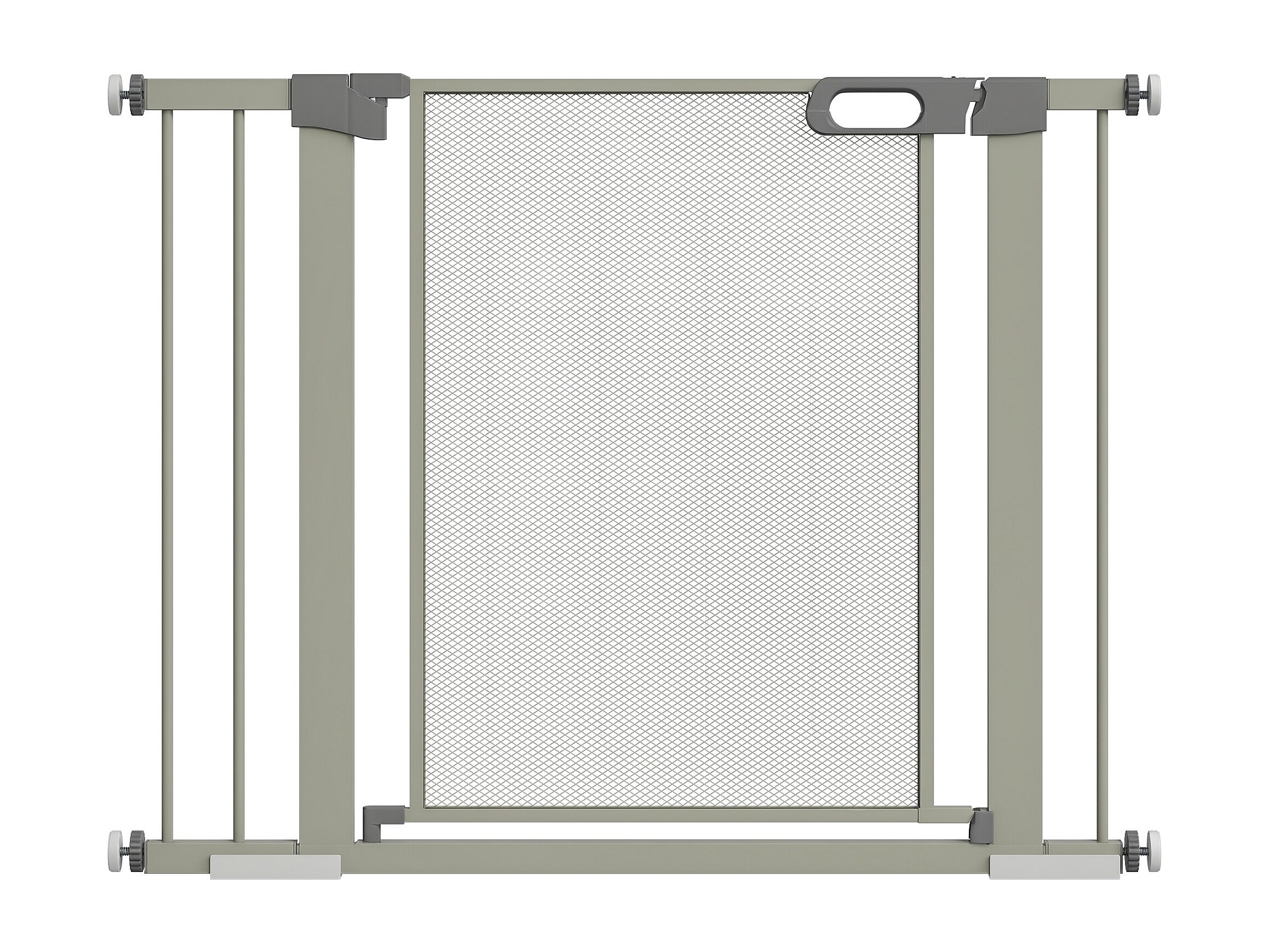 Barrière de sécurité animaux - longueur réglable dim. 75-103 cm - porte double verrouillage, ouverture double sens -sans perçage - acier ABS gris