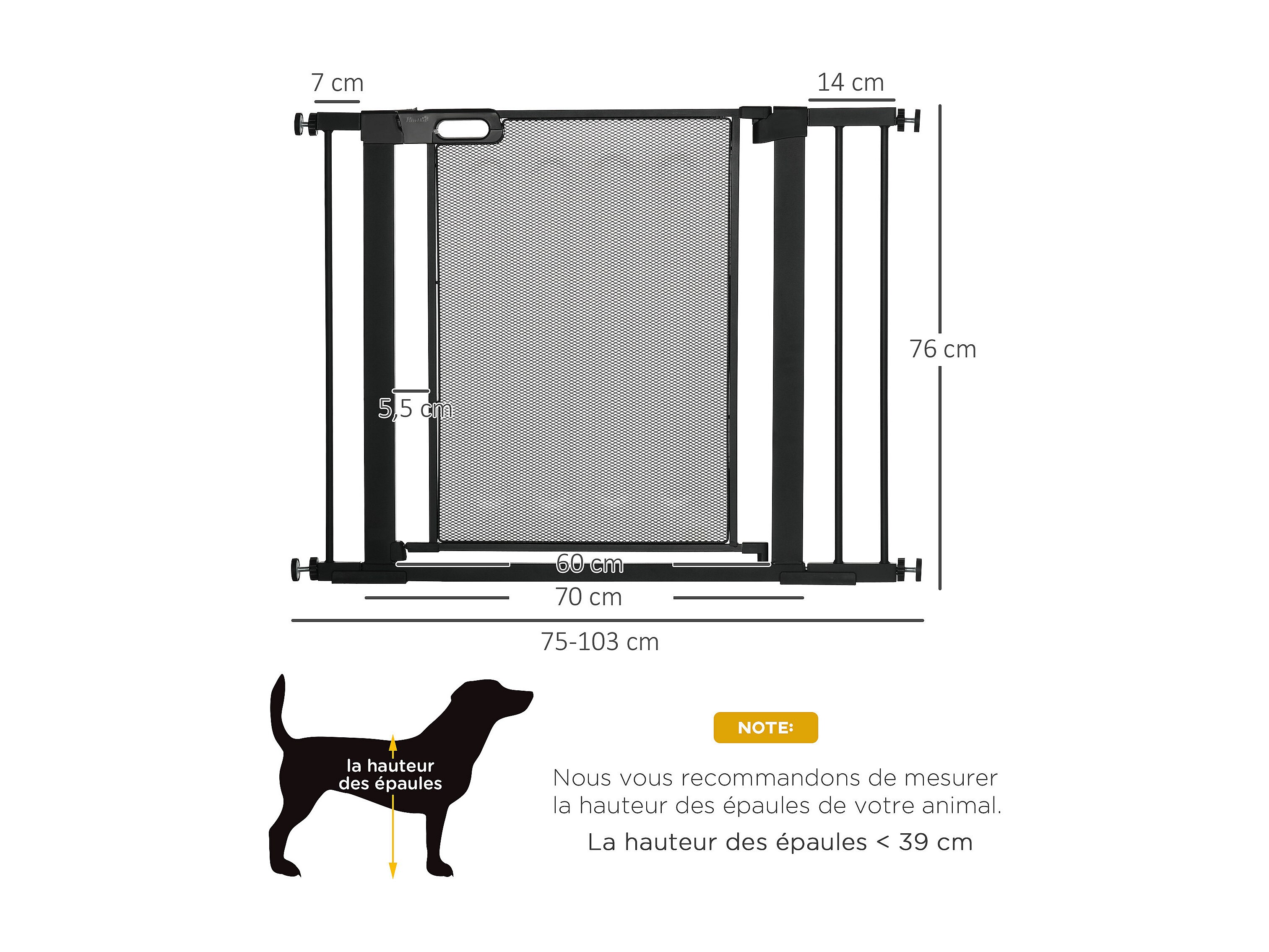 Barrière de sécurité chien H.104 cm - porte double verrouillage - sans perçage - acier noir