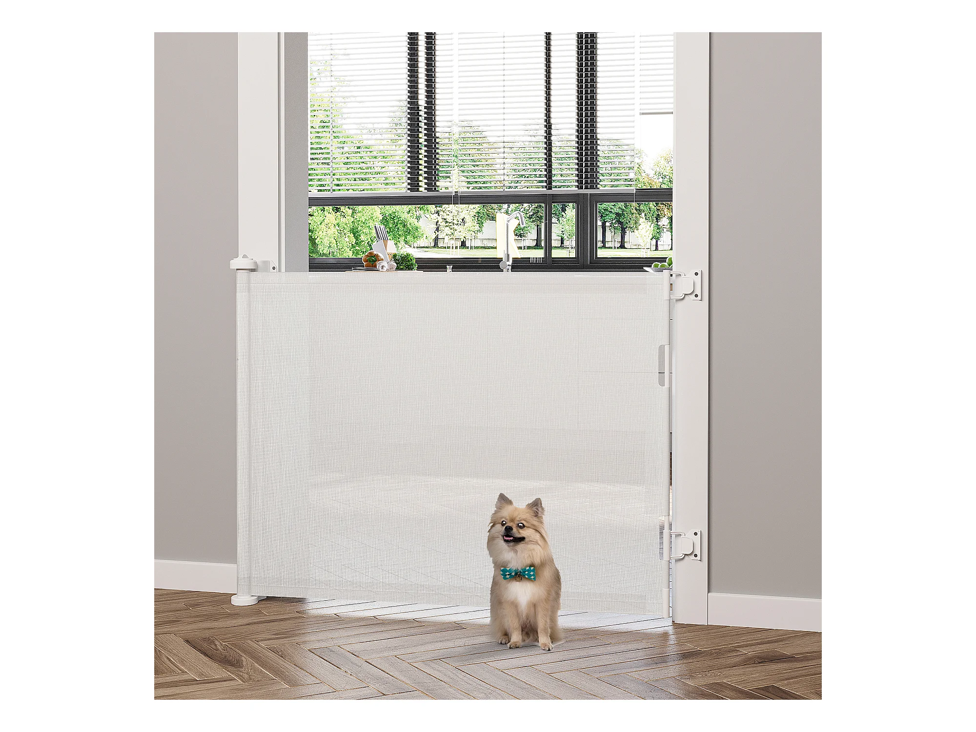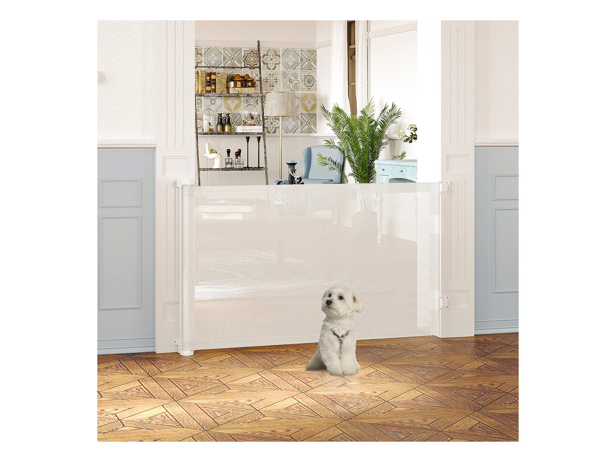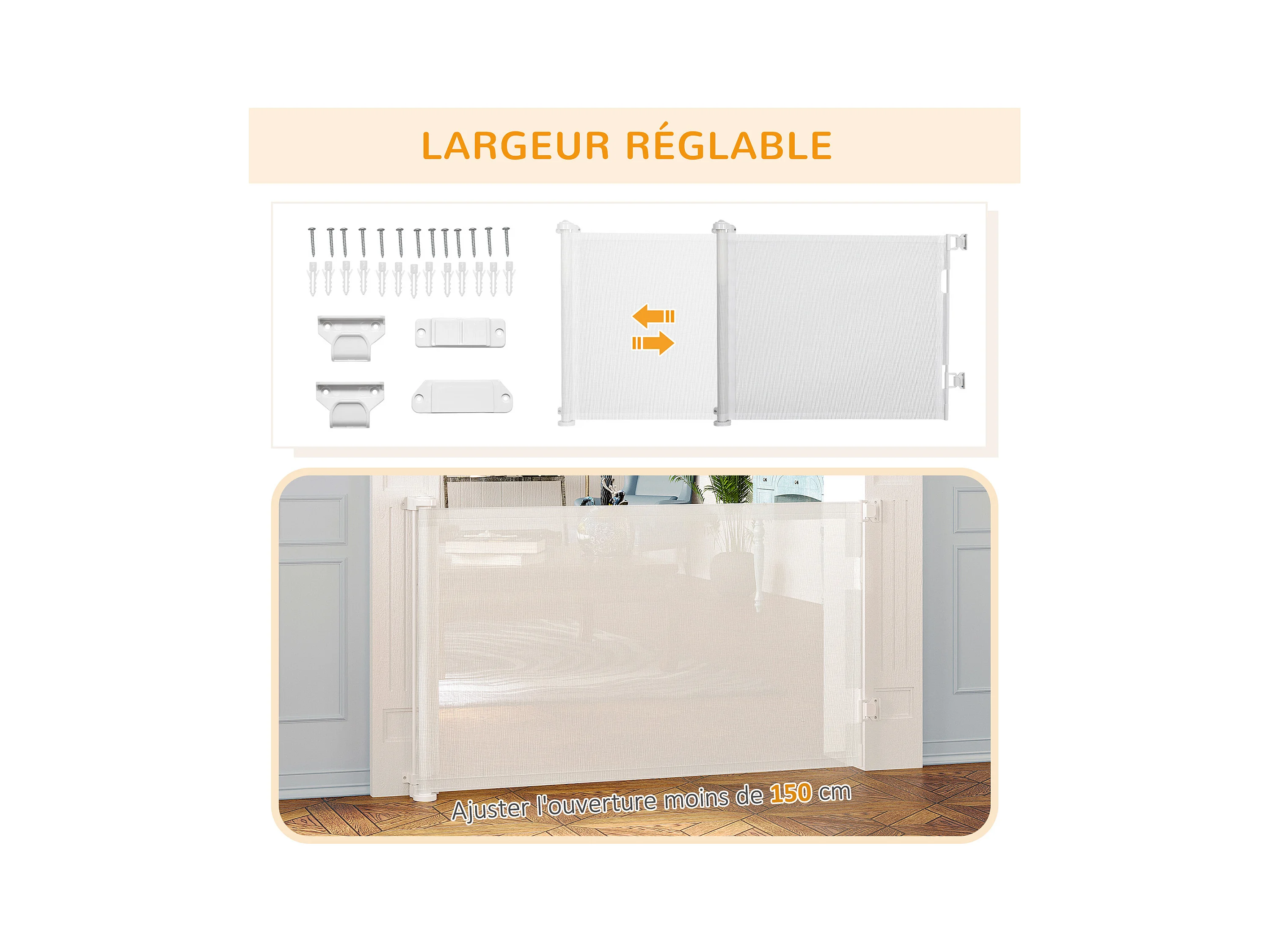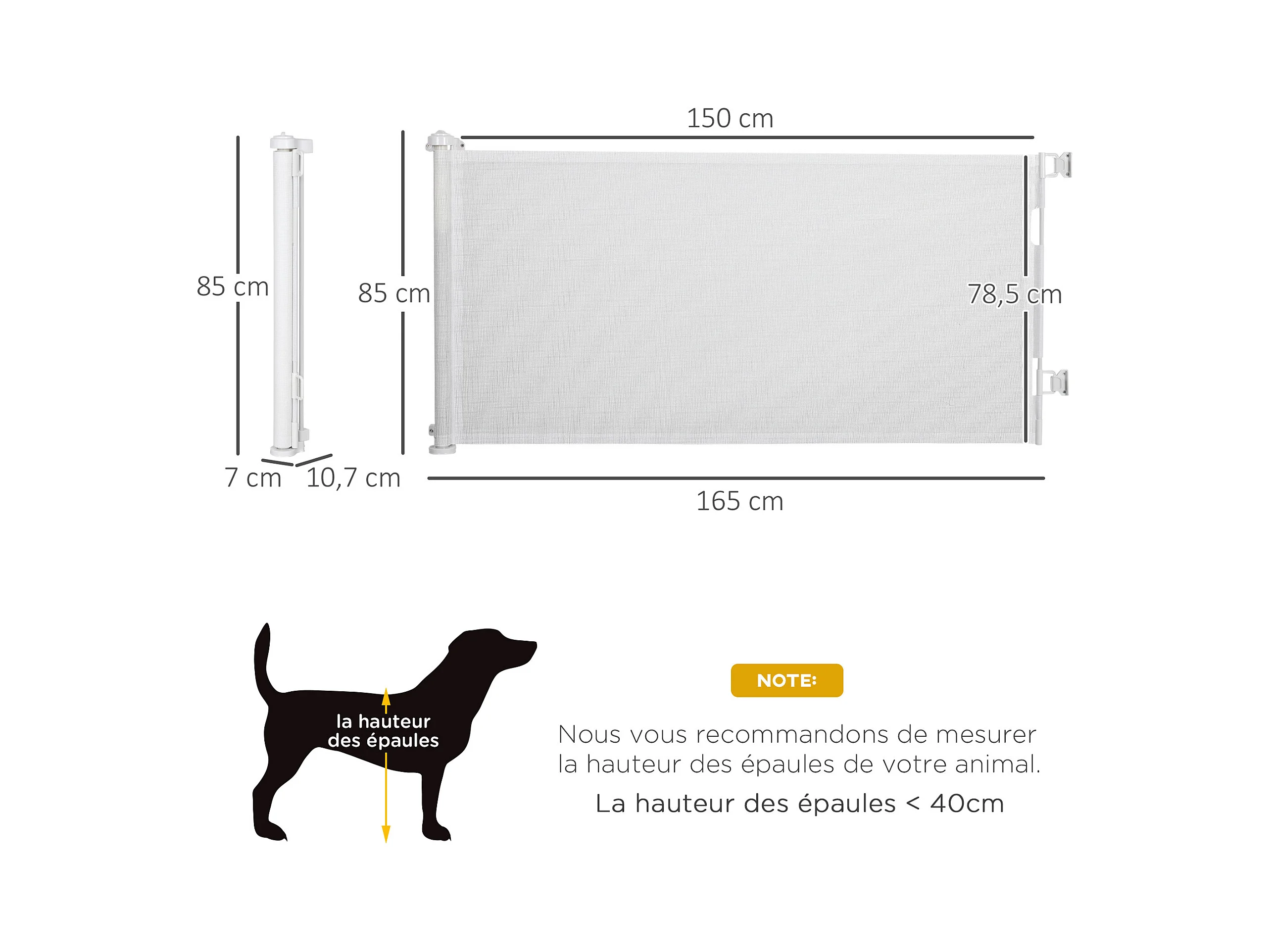 Barrière de sécurité barrière animaux rétractable automatique 1,65L x 0,85H m teslin alu. PVC blanc