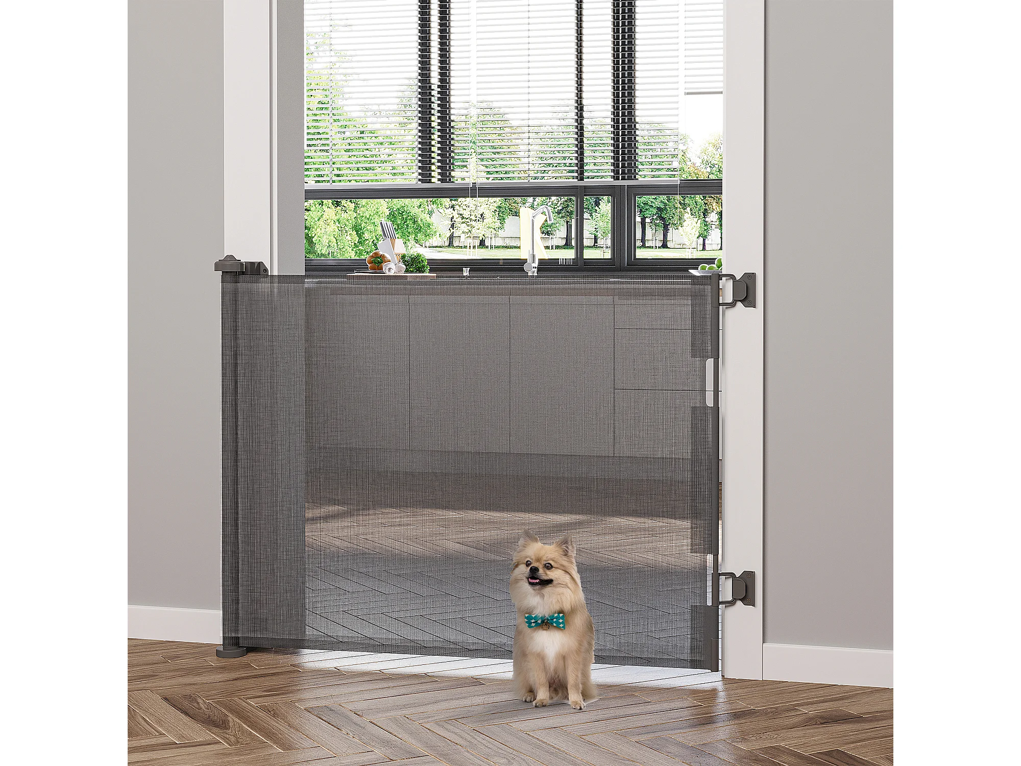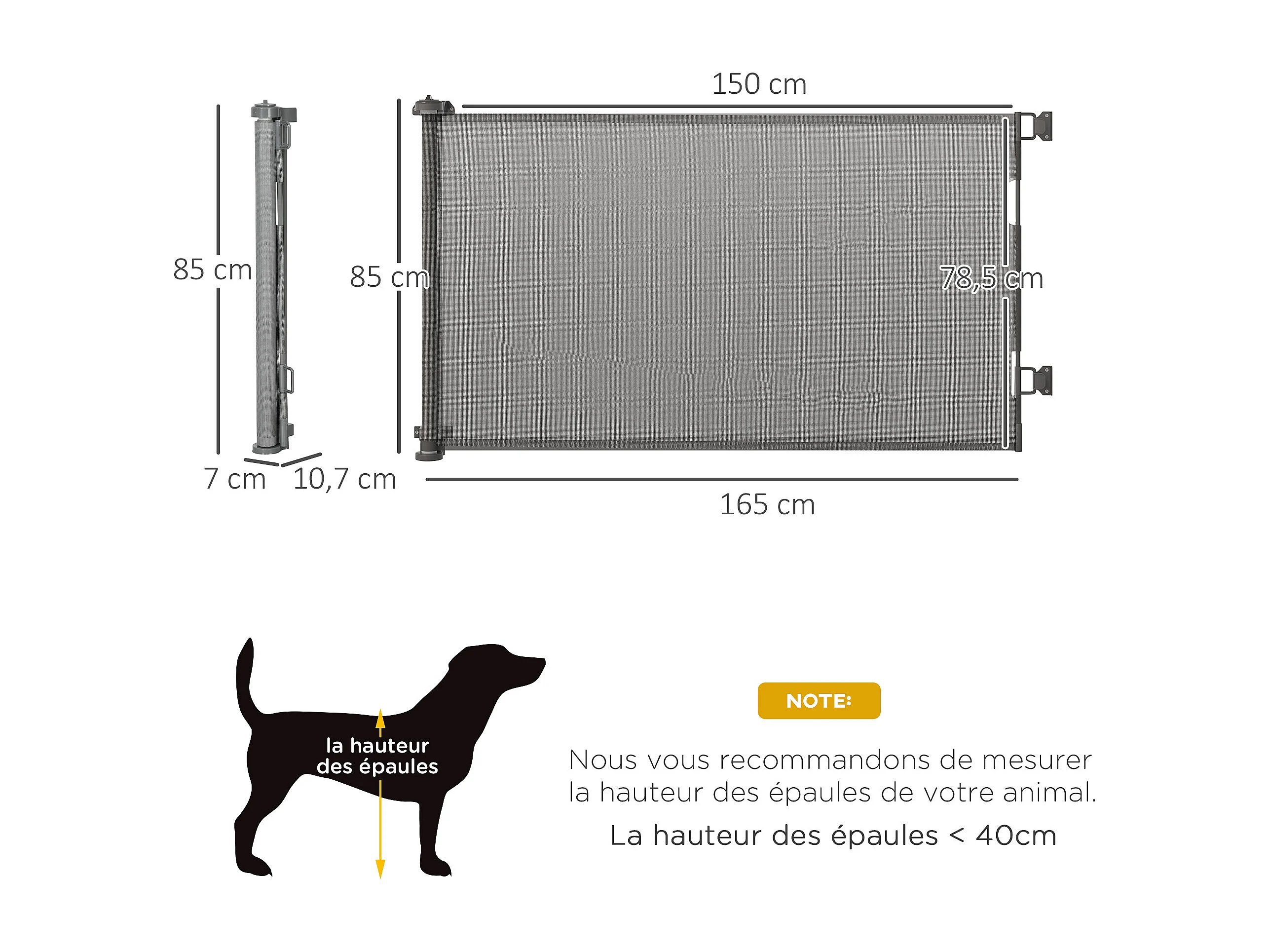 Barrière de sécurité barrière animaux rétractable automatique 1,65L x 0,85H m teslin alu. PVC gris