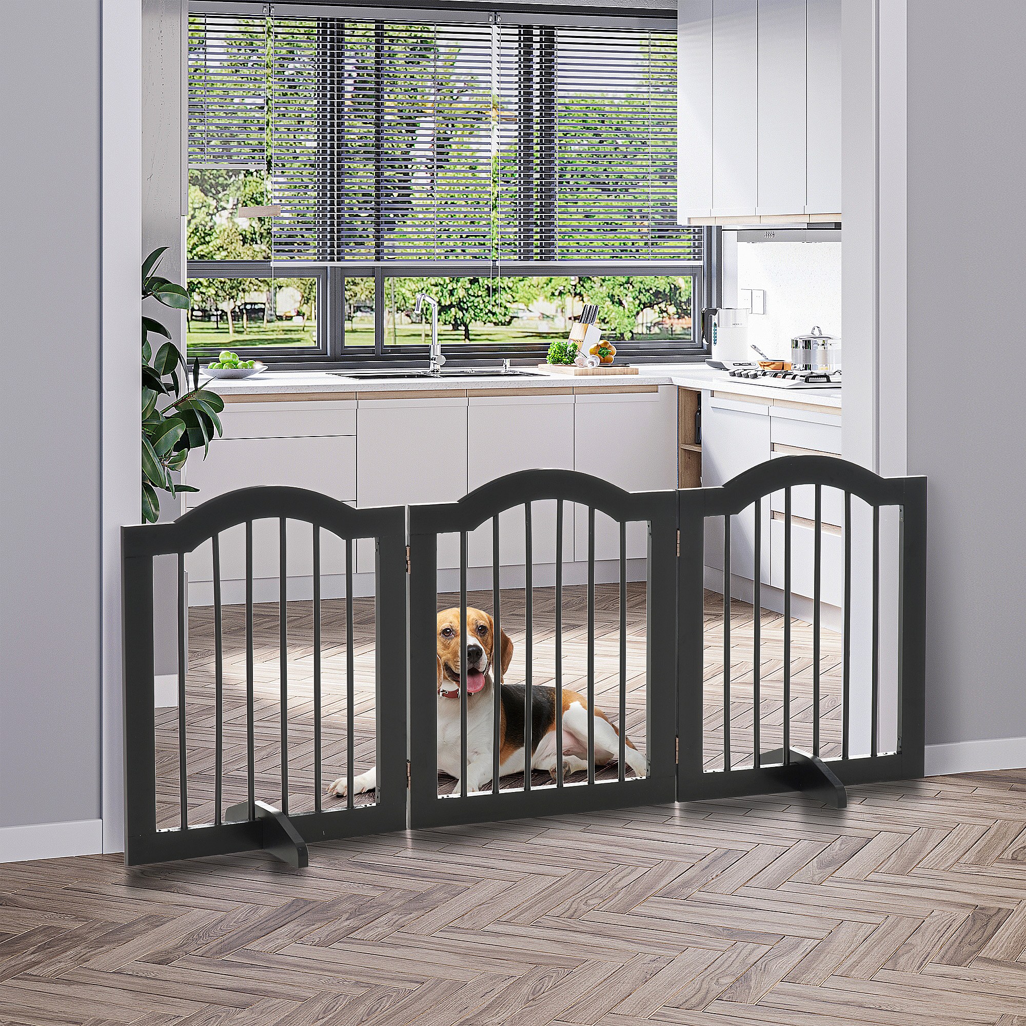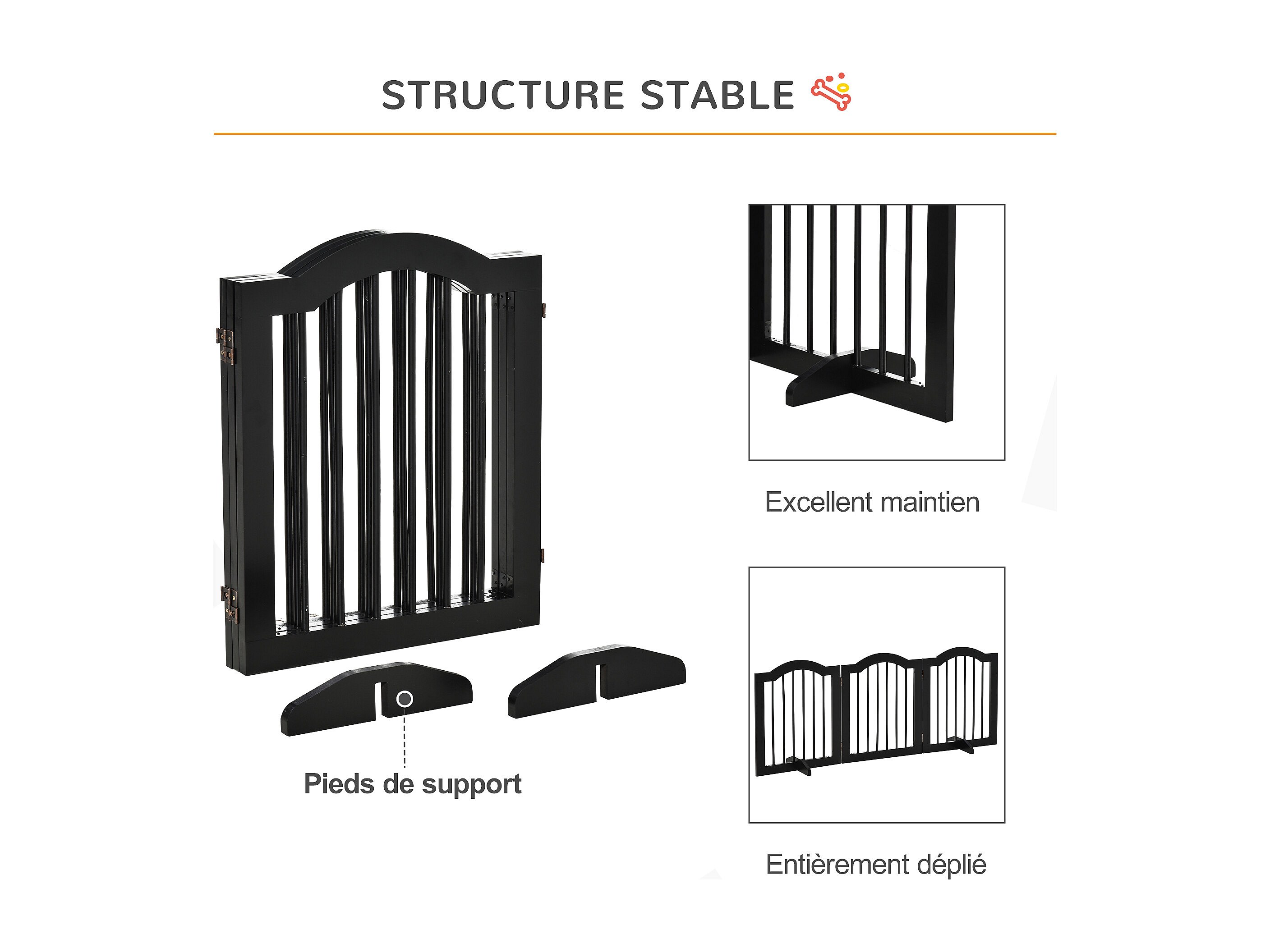 Barrière de sécurité barrière modulable pliable pour animaux de compagnie - piètement support - dim. 154,5L x 61H cm - MDF bois noir