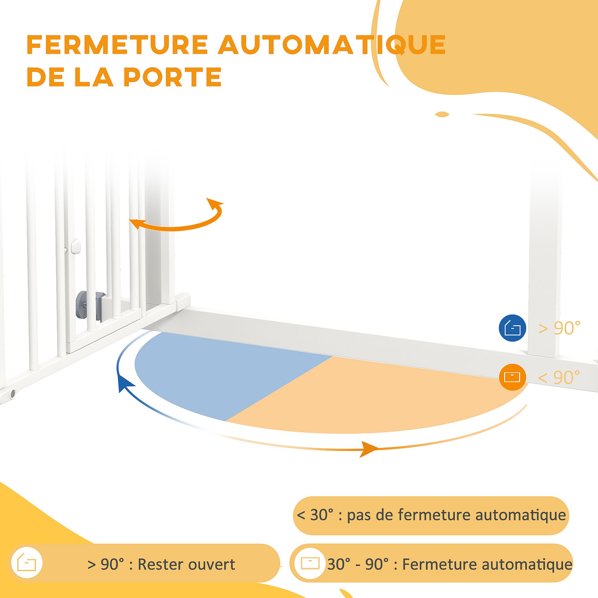 Barrière de sécurité pliable pour chien - 3 panneaux, porte verrouillable - dim. 206L x 90H cm - acier PP blanc