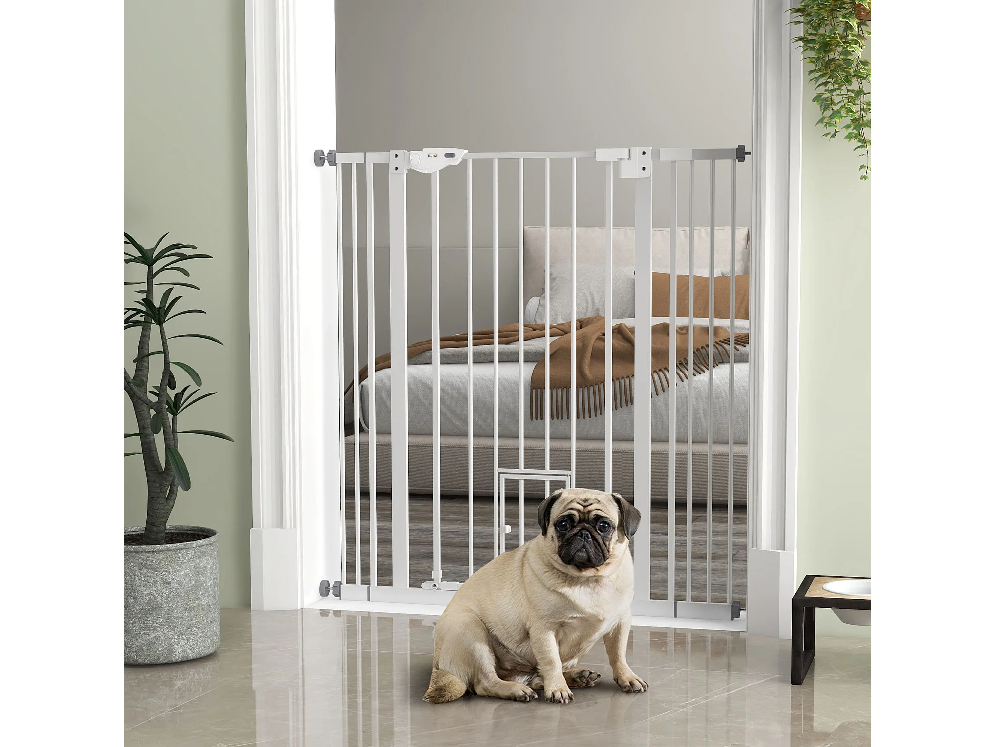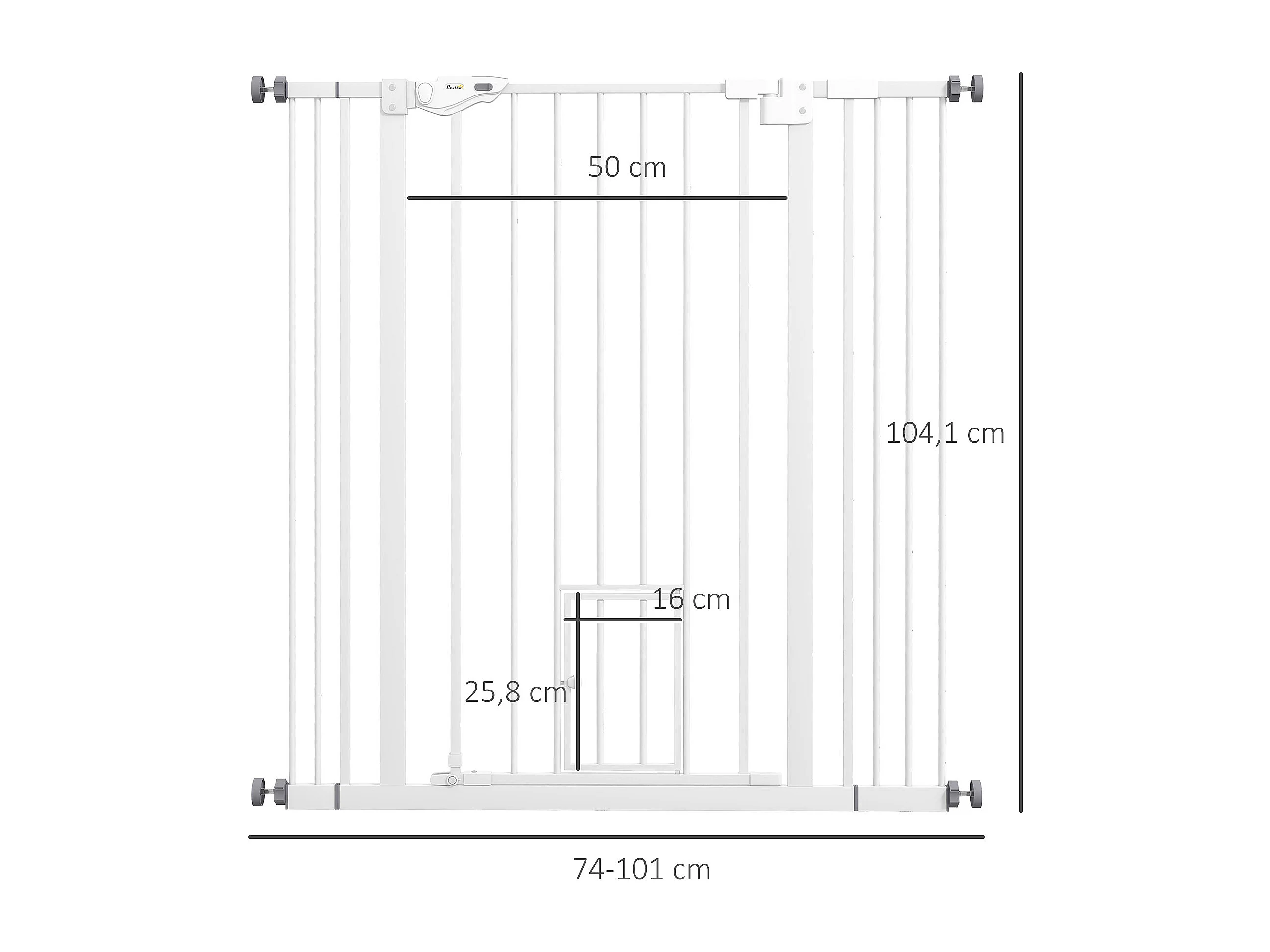 Barrière de sécurité chien H.104 cm - porte double verrouillage - sans perçage - acier blanc