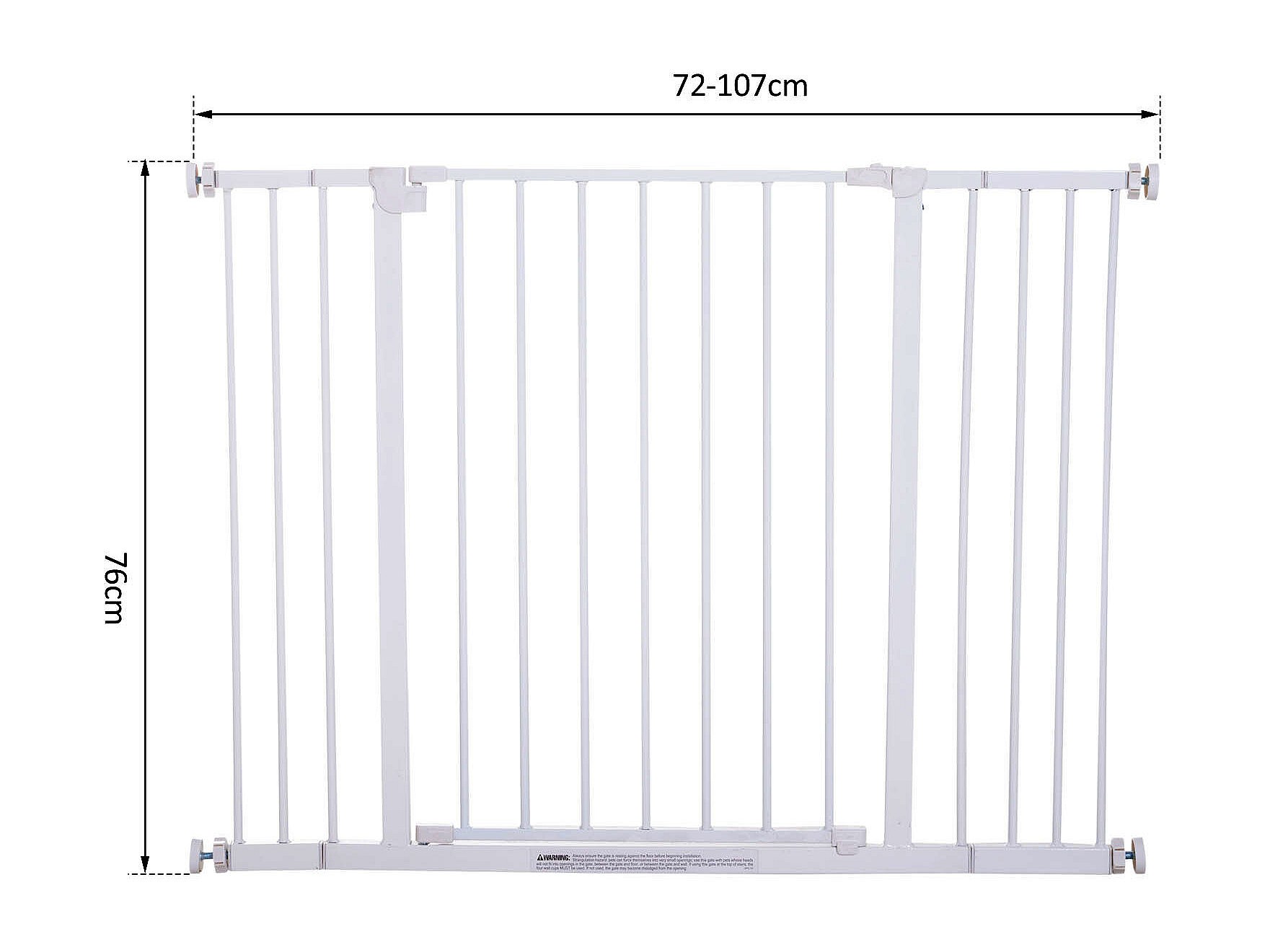 Barrière de sécurité animaux - longueur réglable dim. 75-82 cm - porte double verrouillage, ouverture double sens -sans perçage - acier ABS blanc