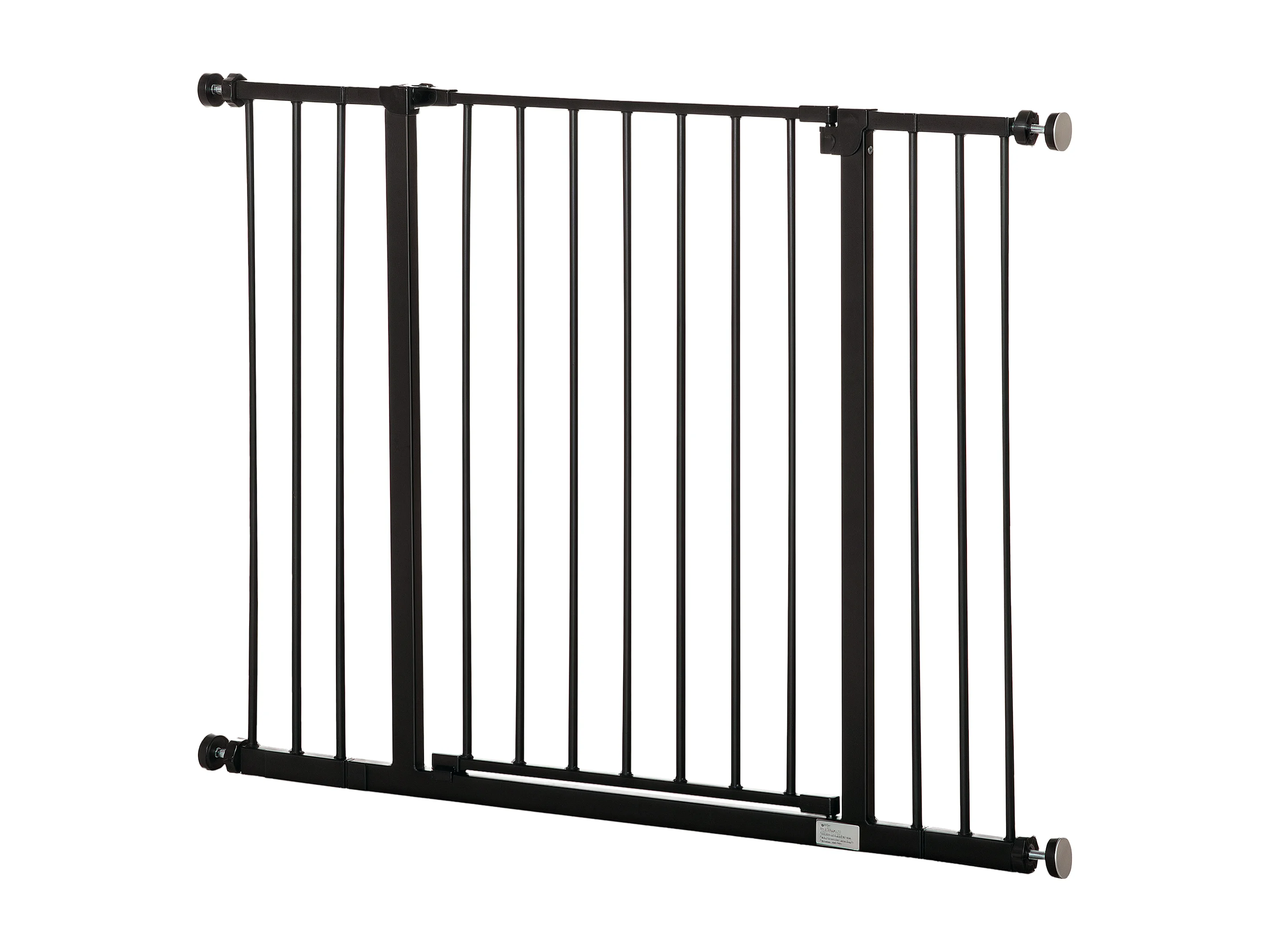 Barrière de sécurité animaux - longueur réglable dim. 74-80 cm - 2 portes verrouillables, ouverture double sens - sans perçage - acier noir pin