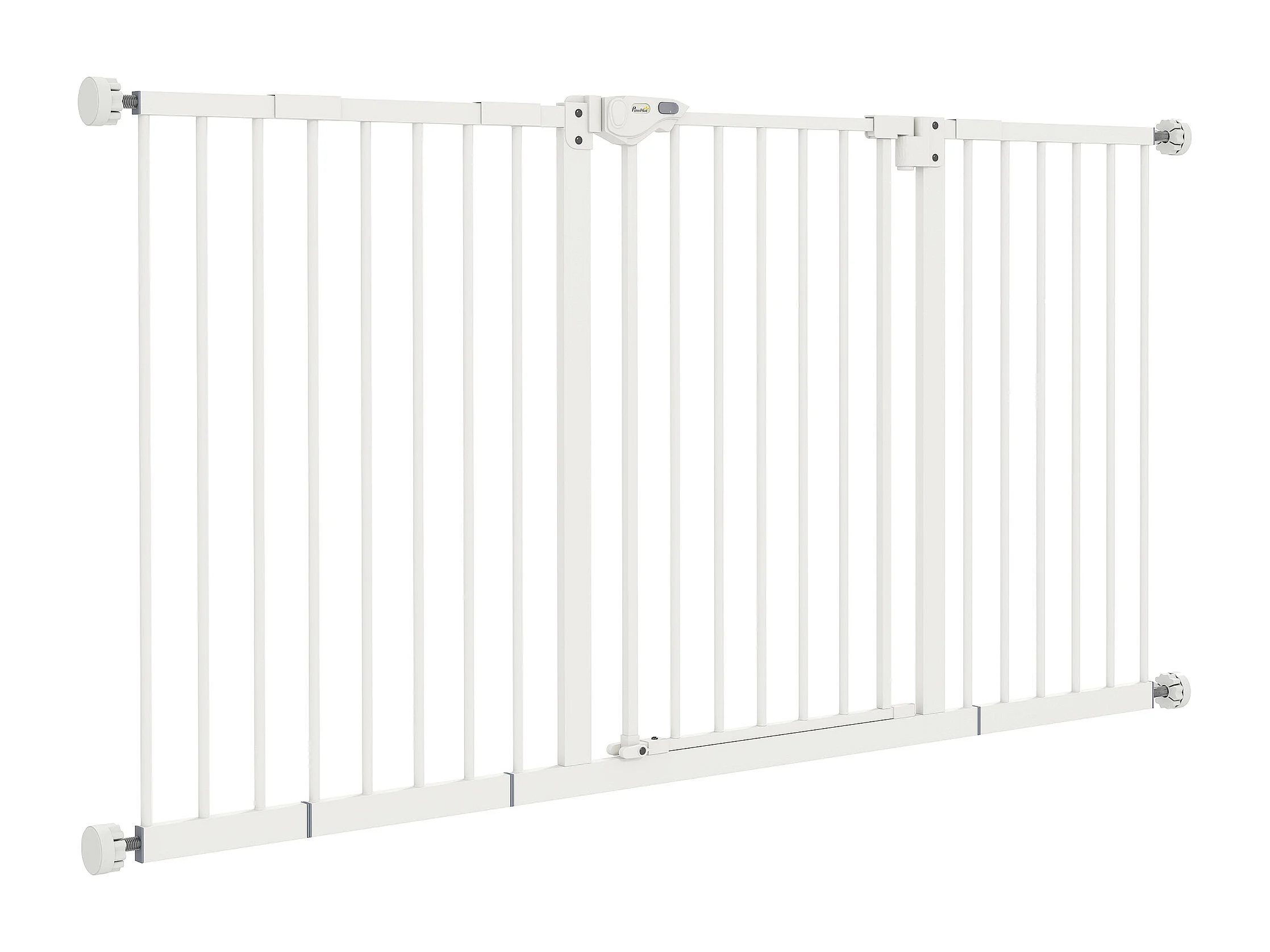 Barrière de sécurité pour chien - barrière à pression extensible - double système de verrouillage - acier blanc