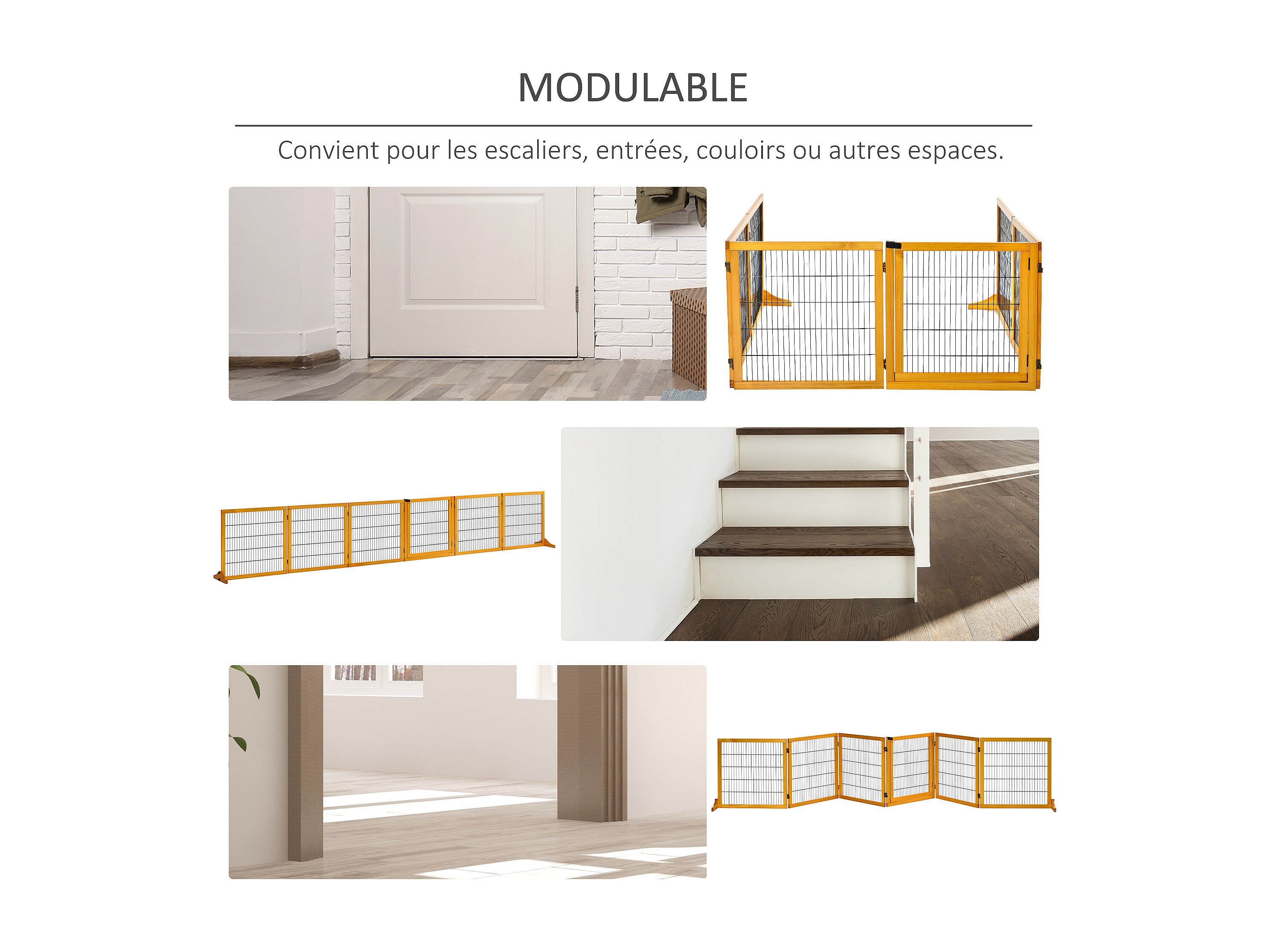 Barrière de sécurité parc enclos chien modulable pliable porte verrouillable intégrée 5 panneaux grillage acier noir bois de pin blanc