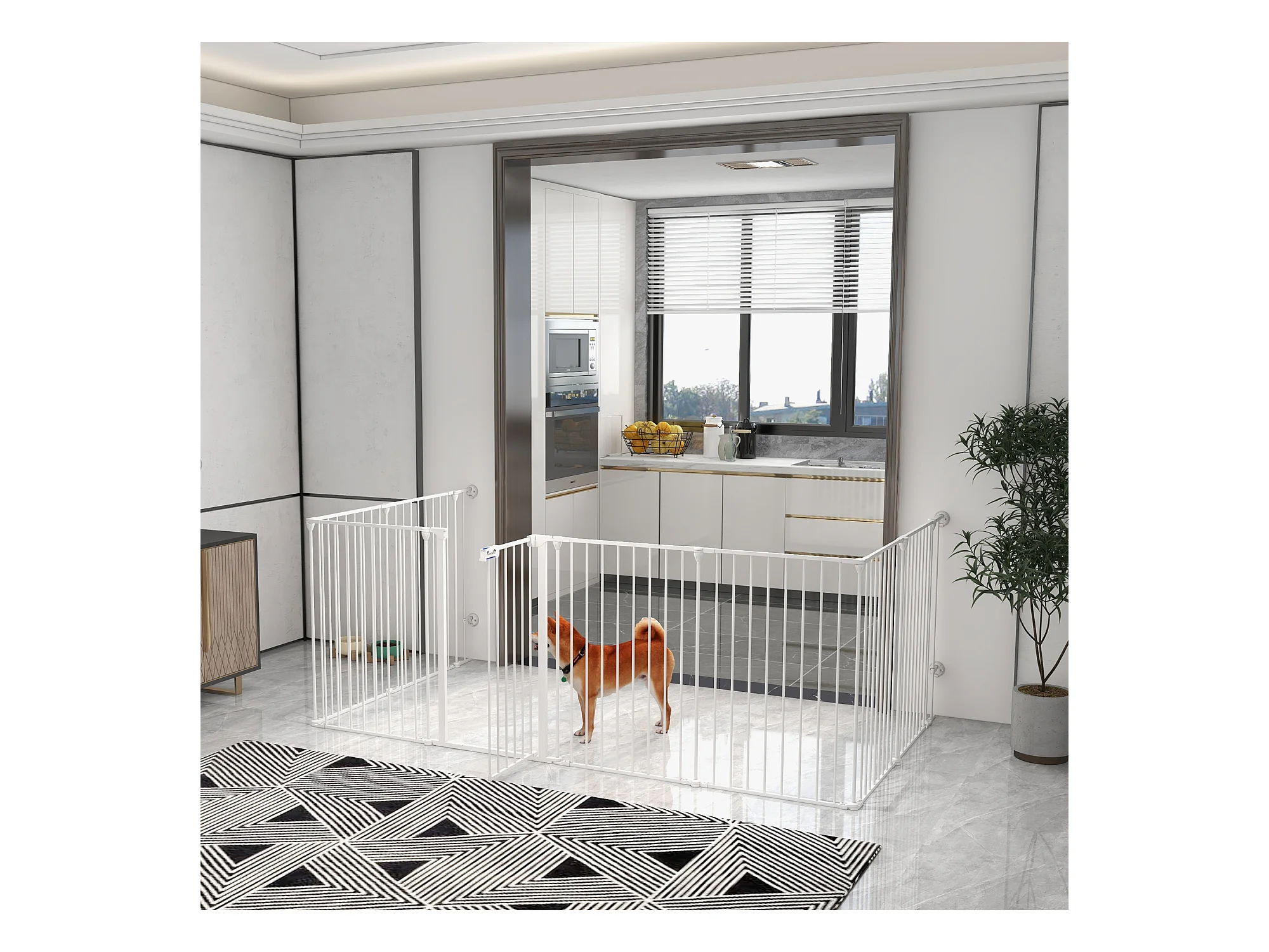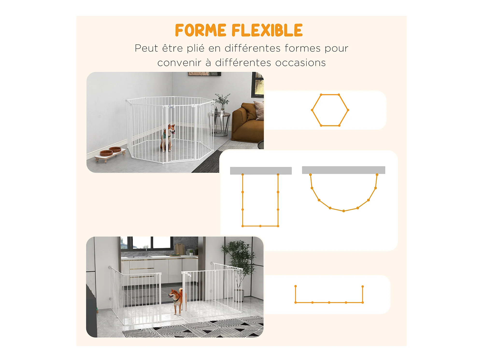 Barrière de sécurité parc enclos chien modulable pliable porte verrouillable intégrée 8 panneaux acier PP blanc