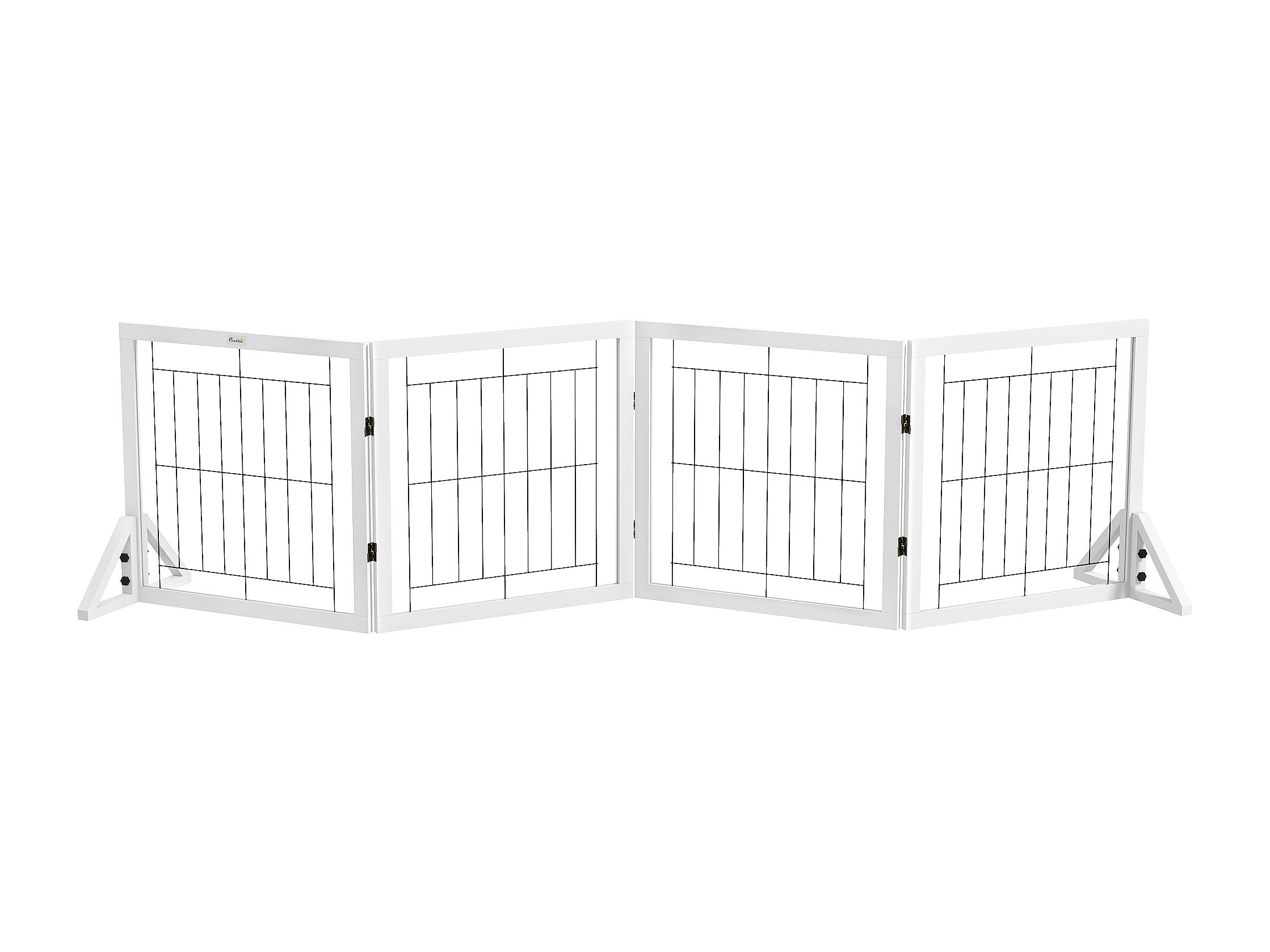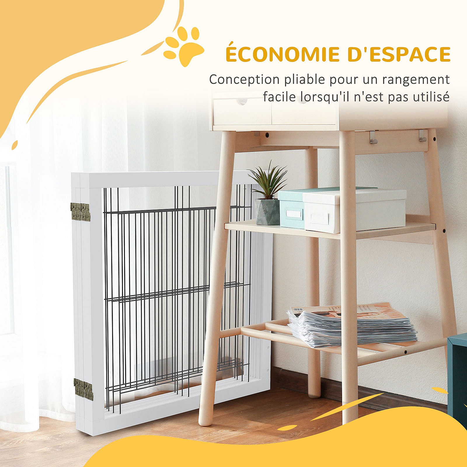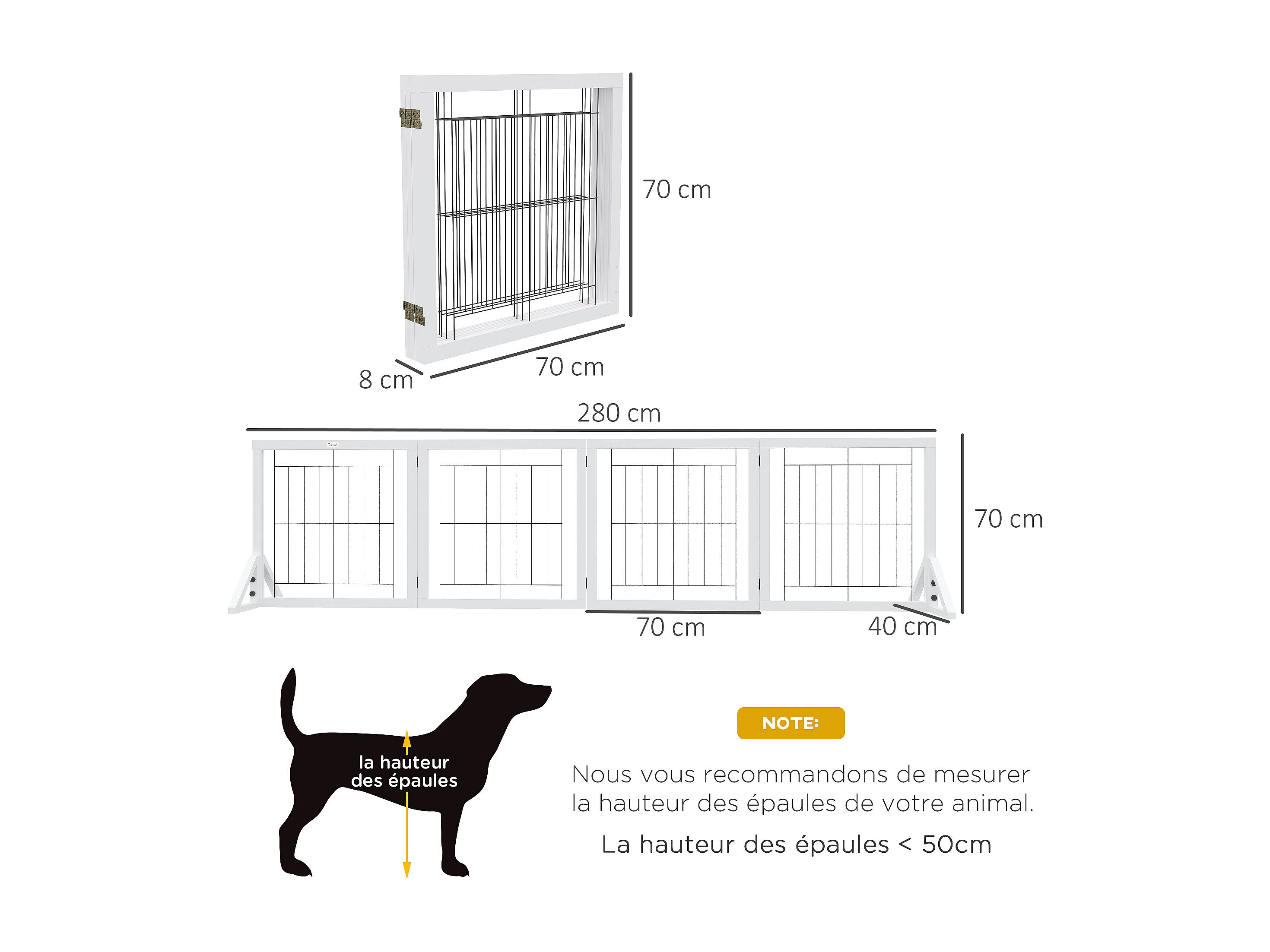 Barrière de sécurité pour animaux autoportante - barrière modulable pliable 4 panneaux - 2 pieds support - acier noir bois blanc