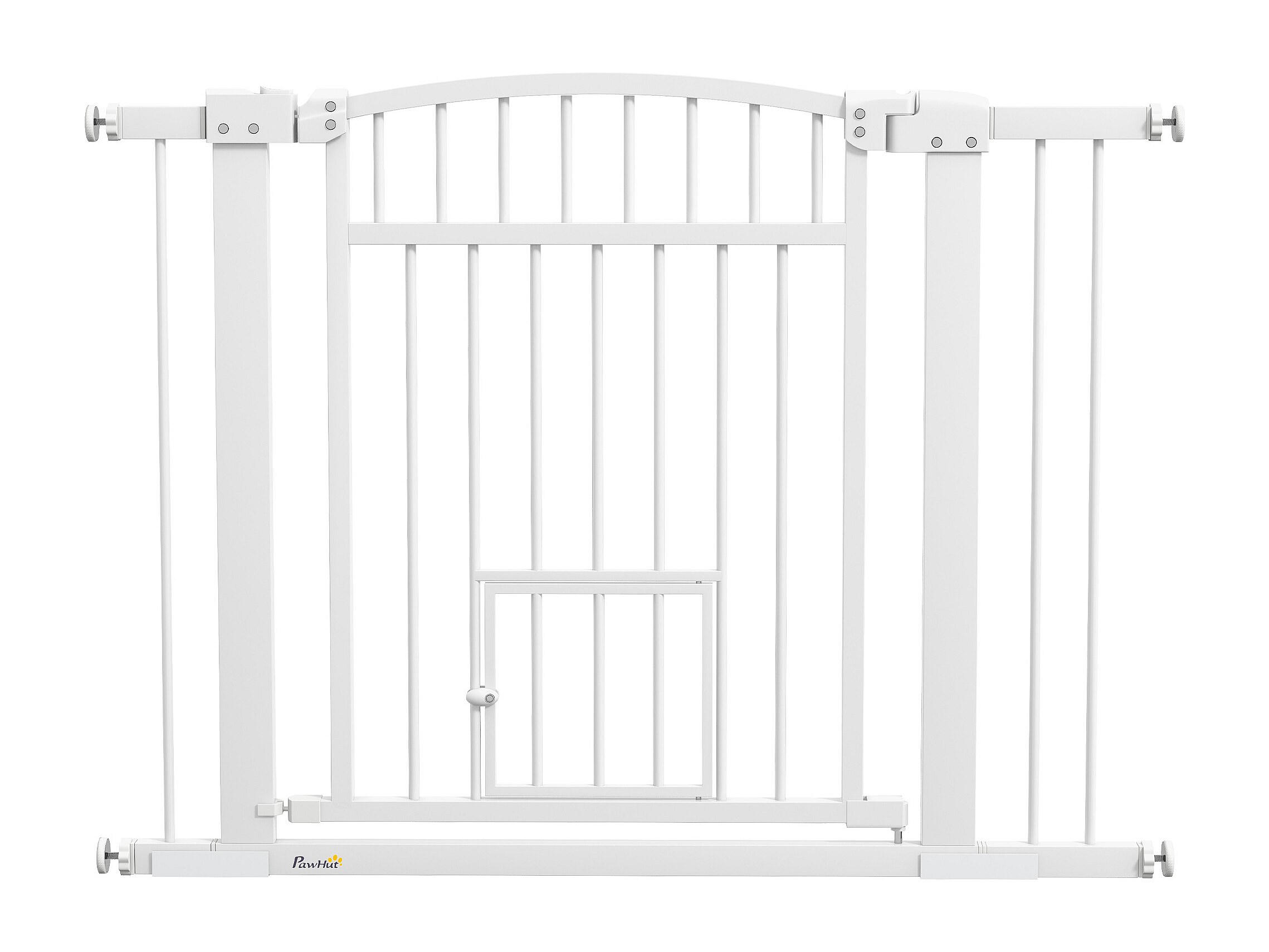 Barrière de sécurité animaux - longueur réglable dim. 75-82 cm - porte double verrouillage, ouverture double sens -sans perçage - acier ABS blanc