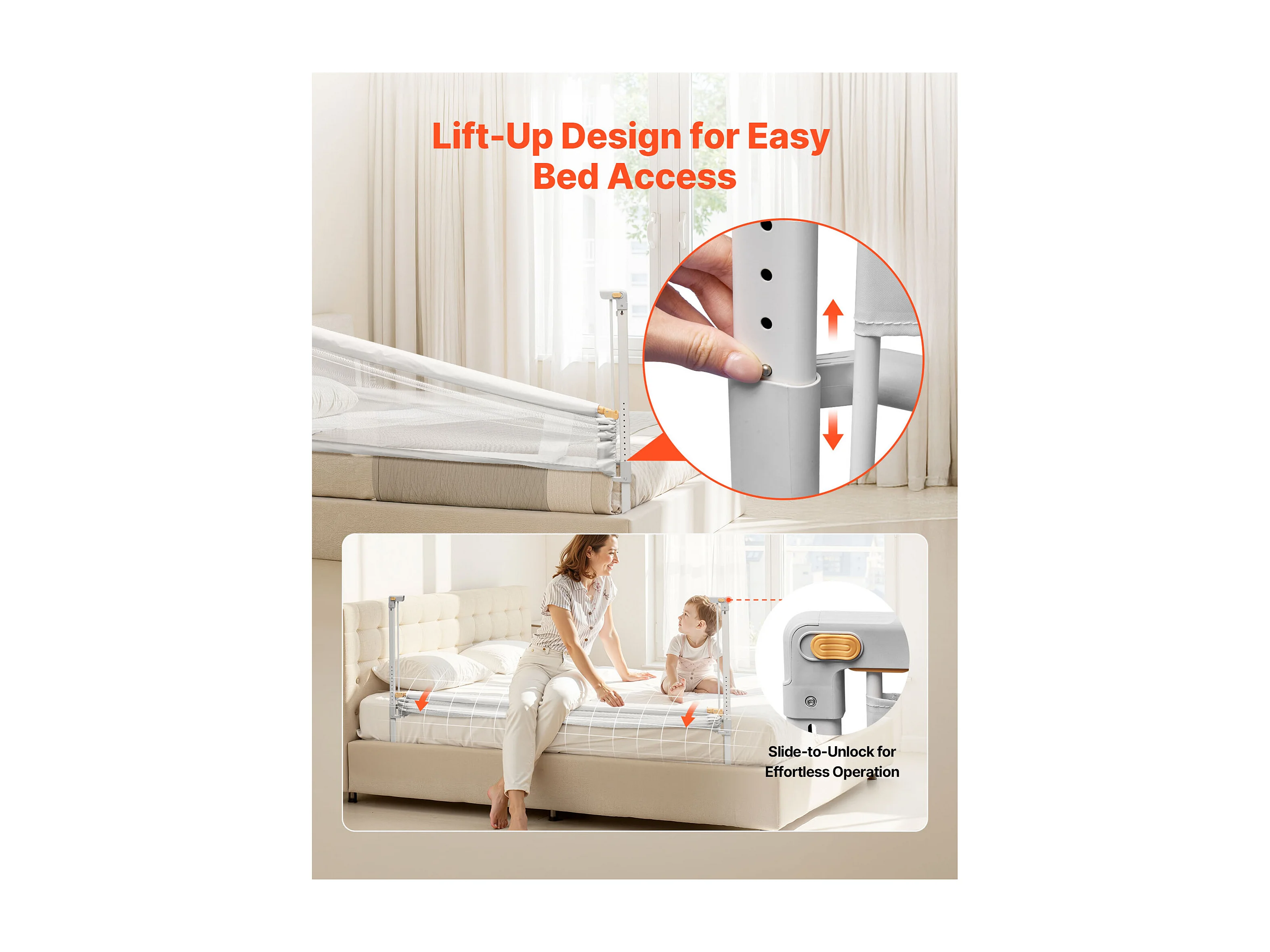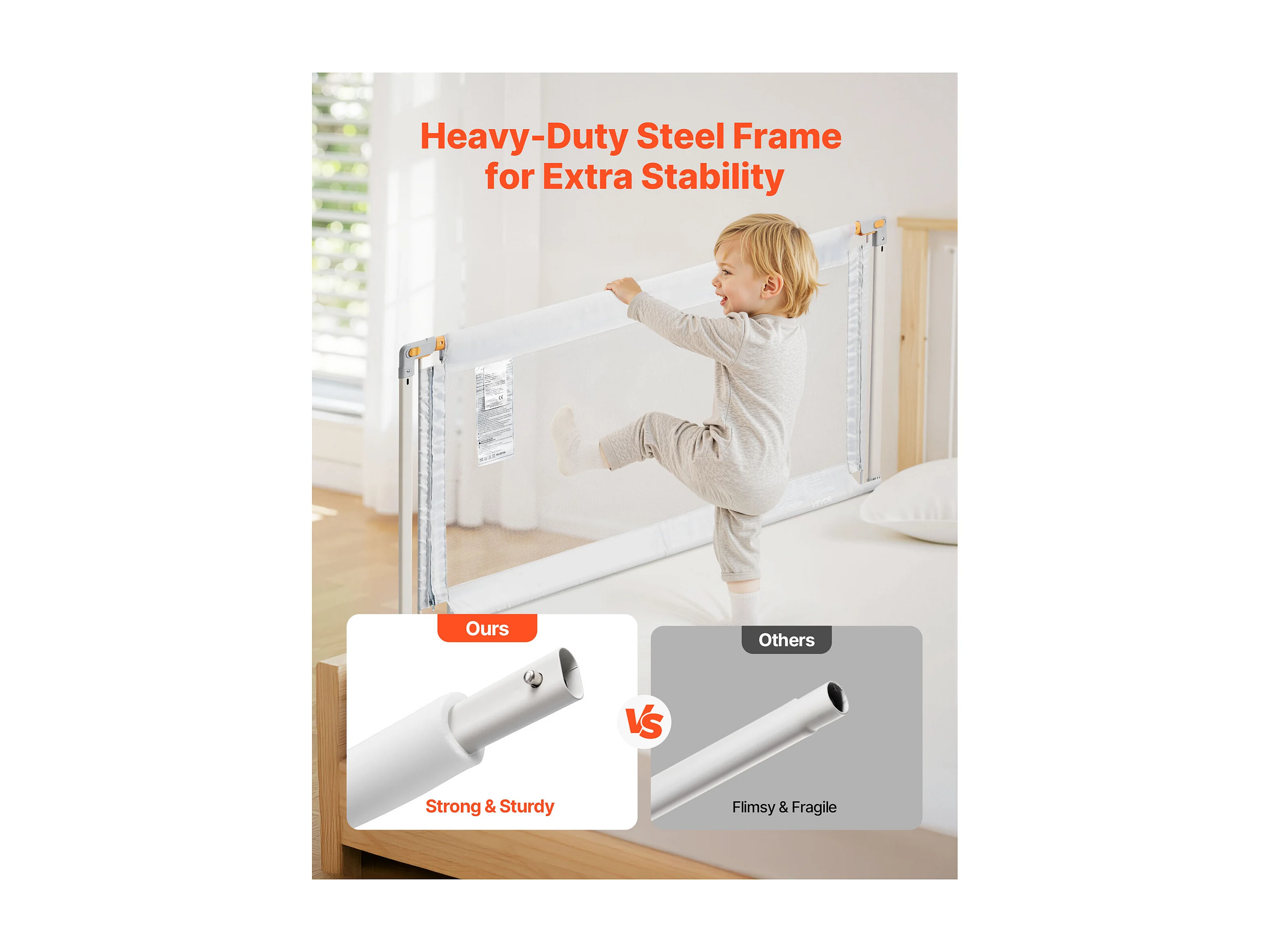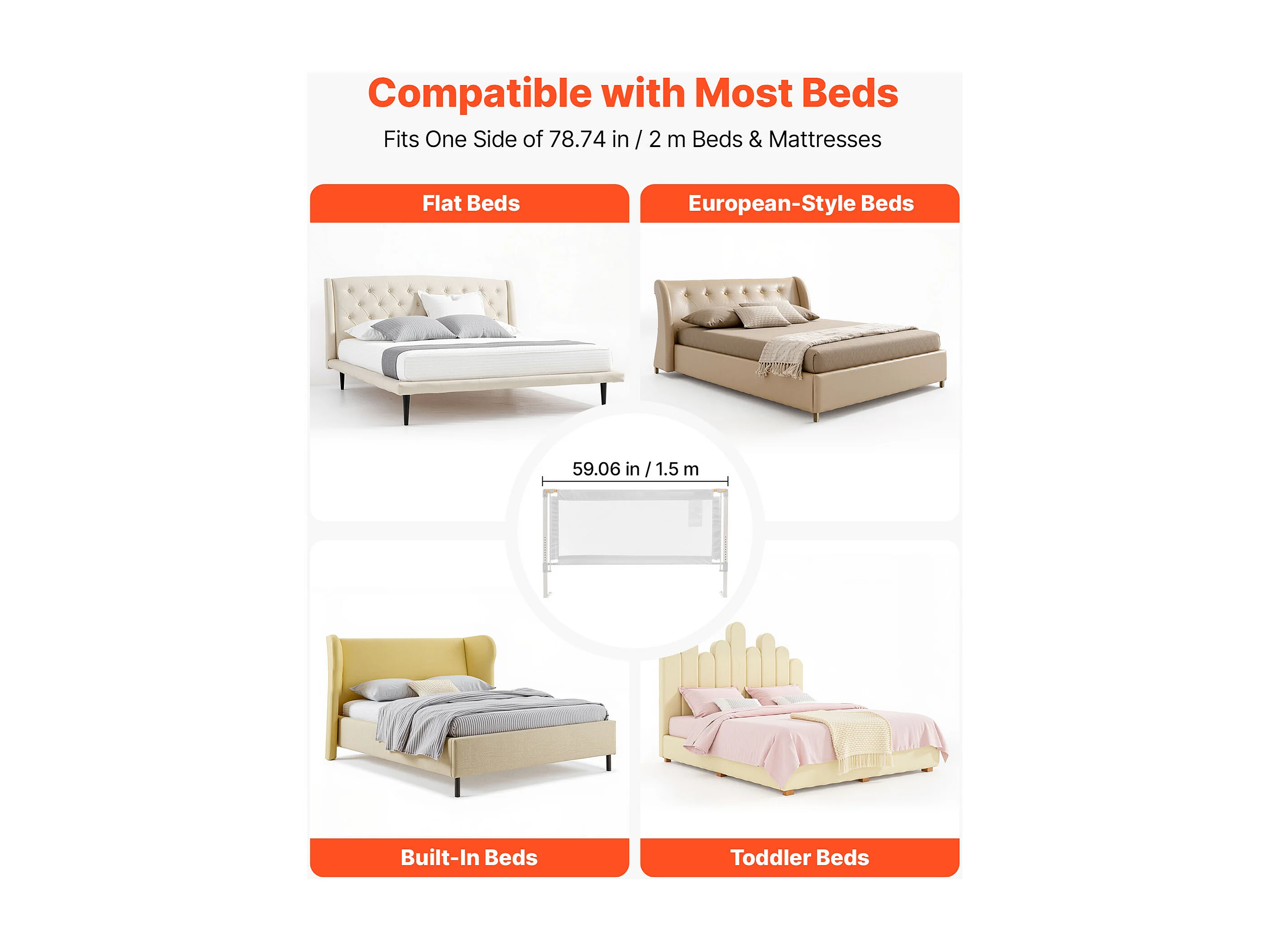 Barrière de Sécurité SucceBuy de Lit pour Enfants, Longueur 1,5 m, Barrière de Lit pour Tout-petits, avec Tube en Fer Renforcé, Hauteur Réglable 68-89 cm