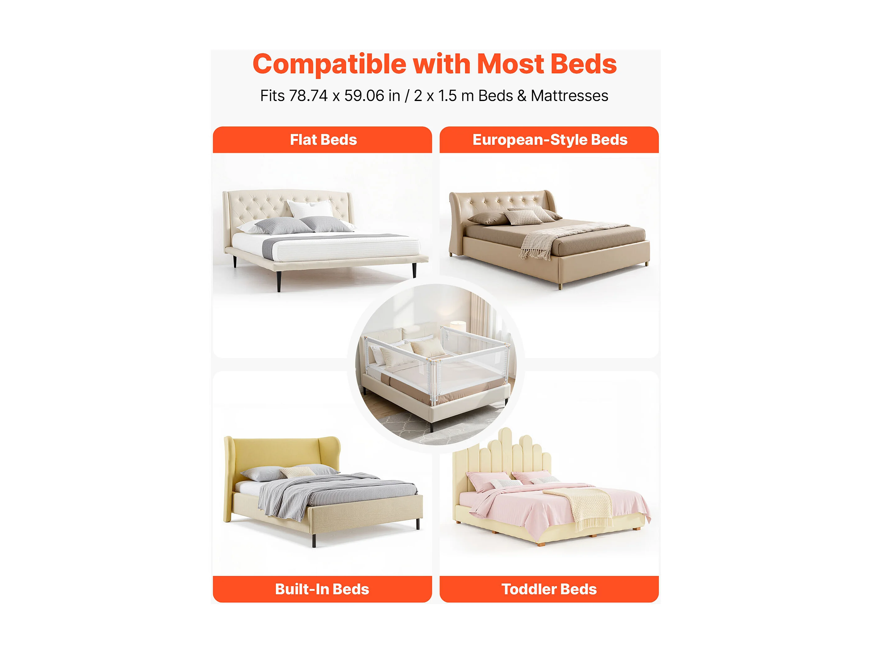 Barrière de Sécurité SucceBuy Lit pour Enfants, 3 Côtés, Barrière de Lit pour Tout-petits, Tube Fer Renforcé, Tissu Oxford, Hauteur Réglable 68-89 cm
