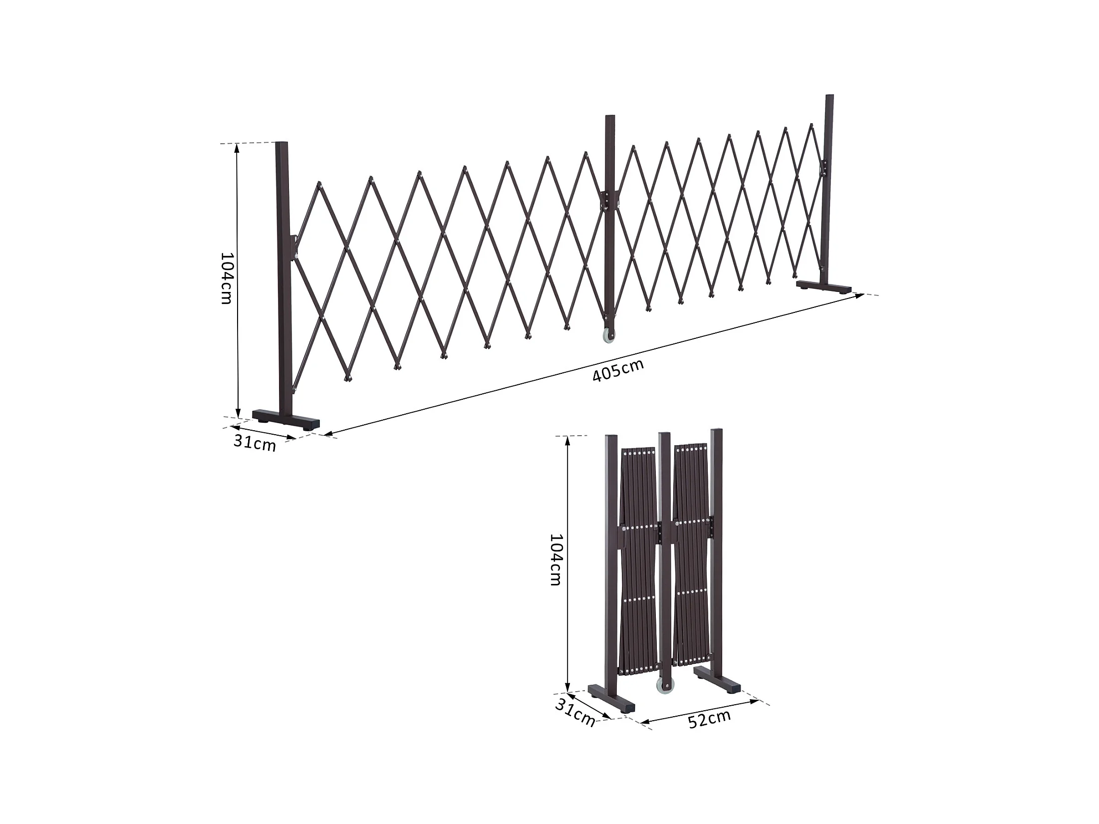 Barrière extensible rétractable barrière de sécurité avec roulette 405L x 31l x 104H cm alu métal chocolat