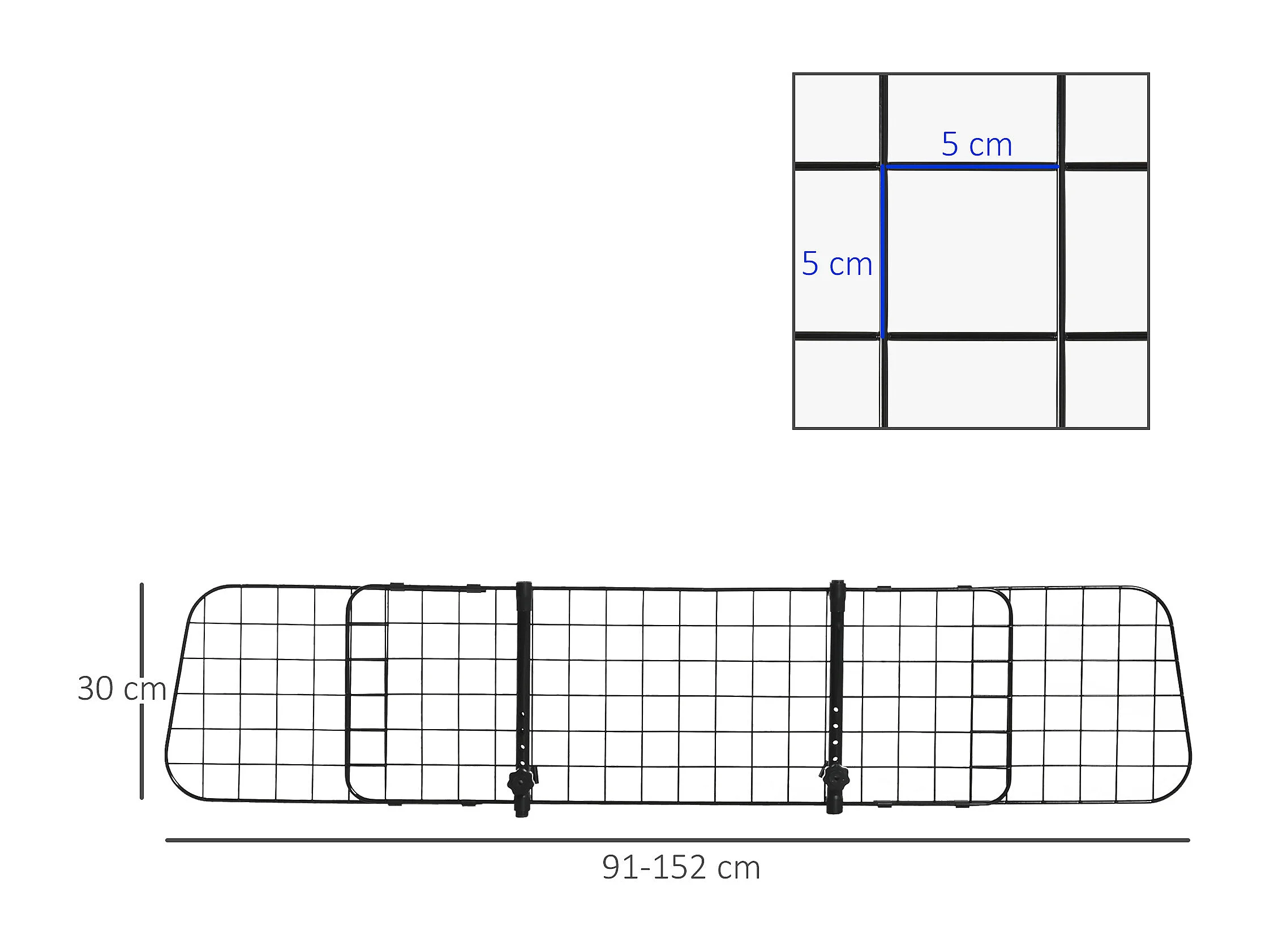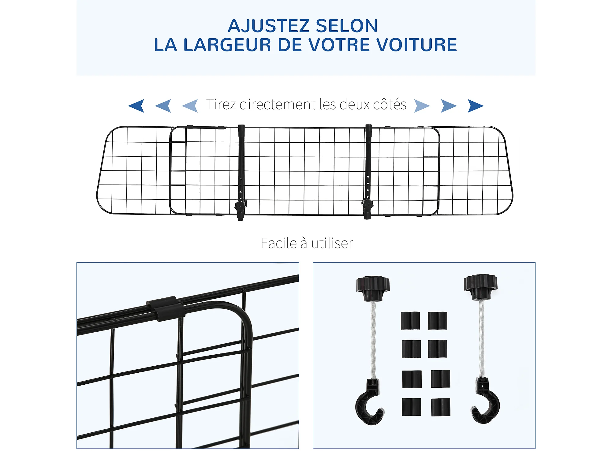 Barrière grille de séparation universelle voiture pour animaux longueur réglable dim. 91-152L x 30H cm kit complet installation inclus noir