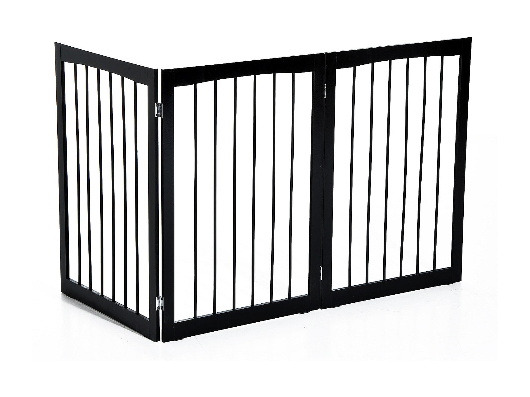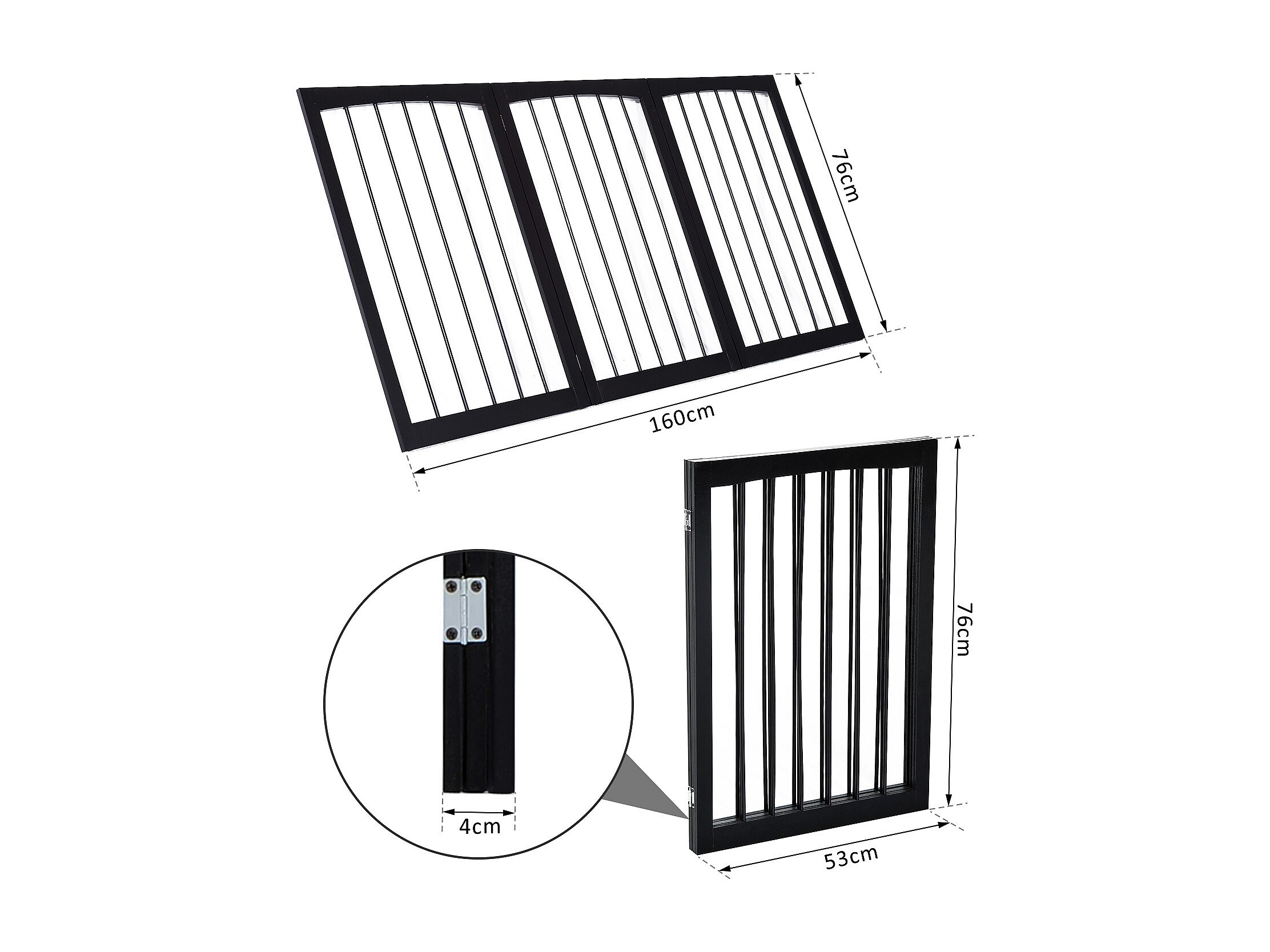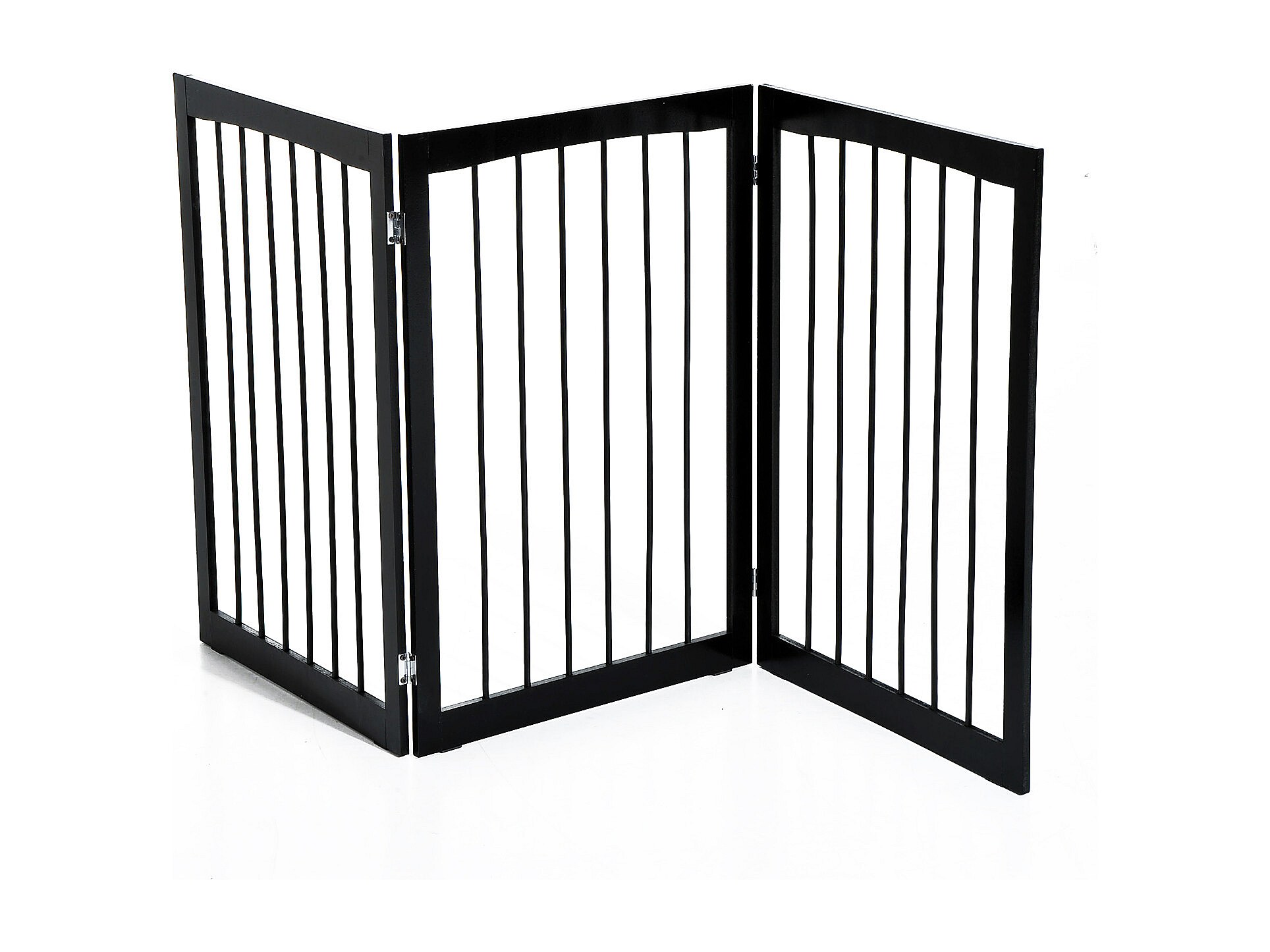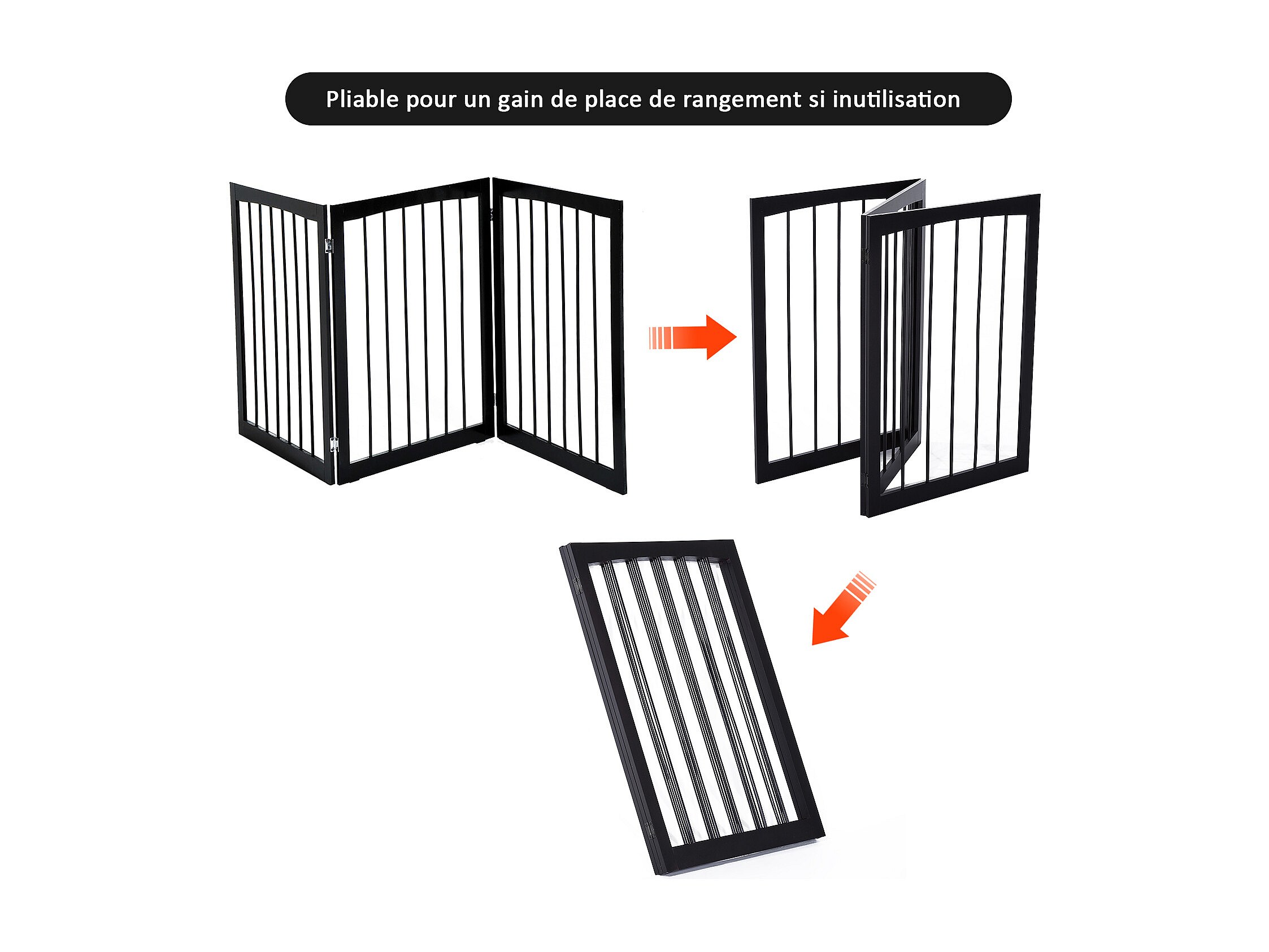 Barrière de sécurité barrière modulable pliable pour animaux de compagnie - piètement support - dim. 154,5L x 61H cm - MDF bois noir