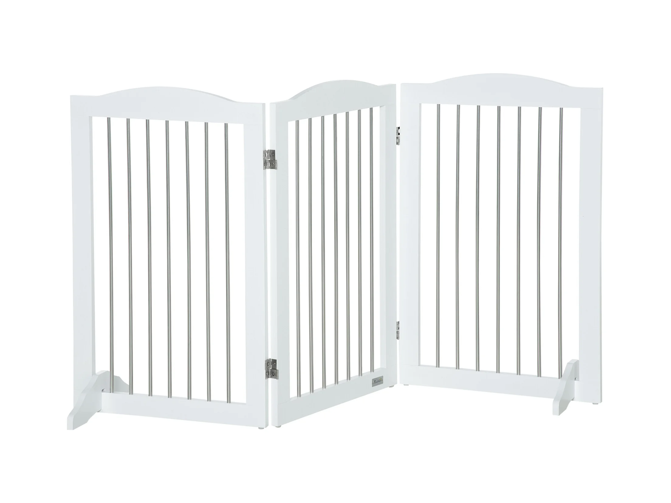 Barrière pliante pour chiens, 3 panneaux, MDF, blanc, avec support (154x30x80cm)