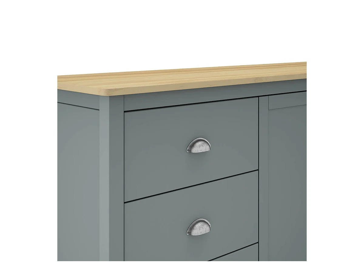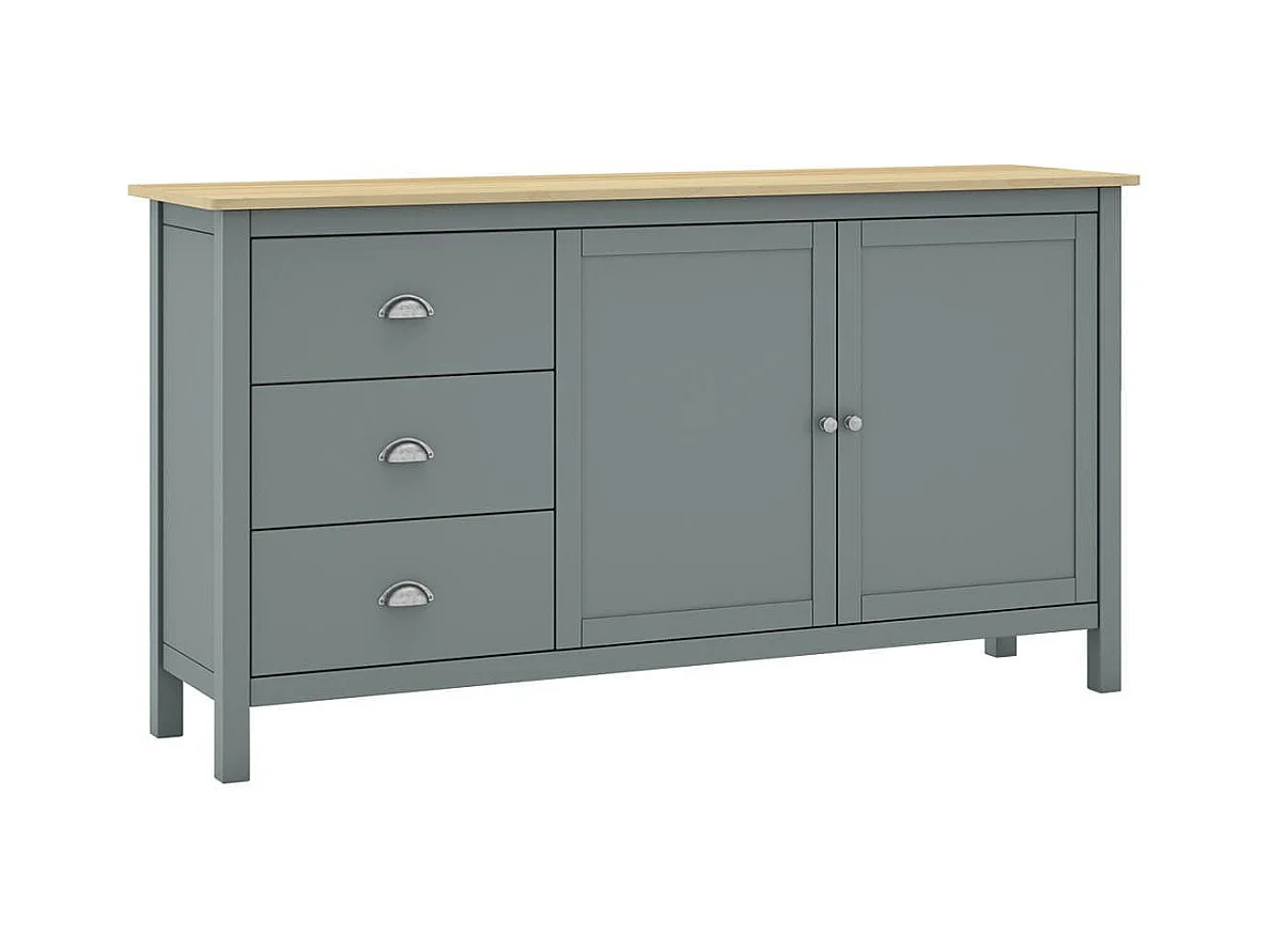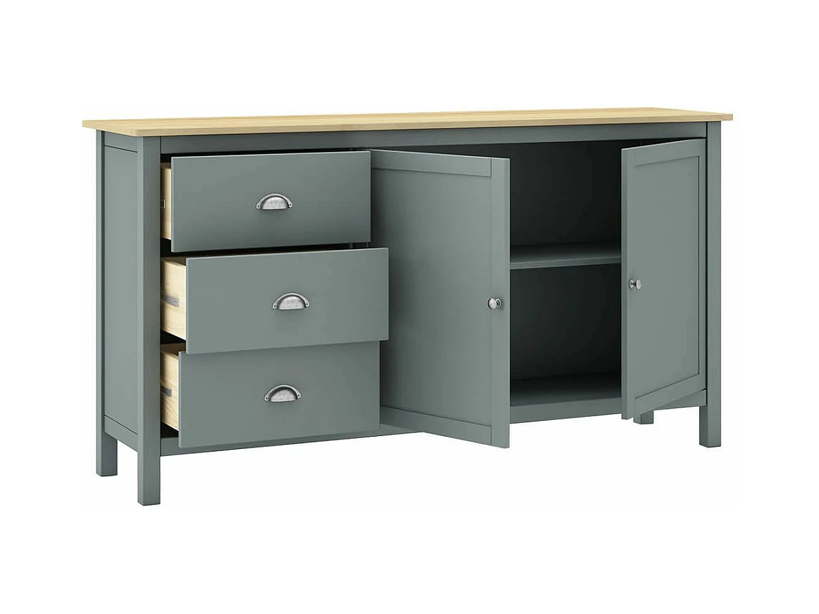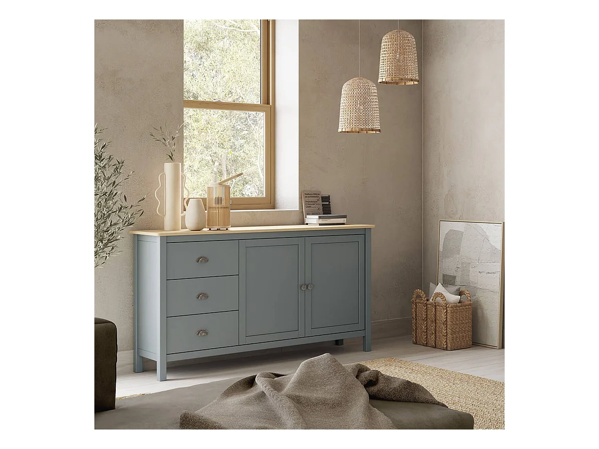 BASCO - Buffet 2 Portes 3 Tiroirs en Pin Massif Naturel et Vert Céladon