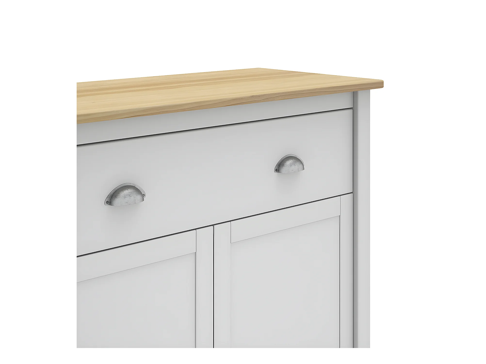BASCO - Meuble d'Appoint 2 Portes 1 Tiroir en Pin Massif Naturel et Blanc