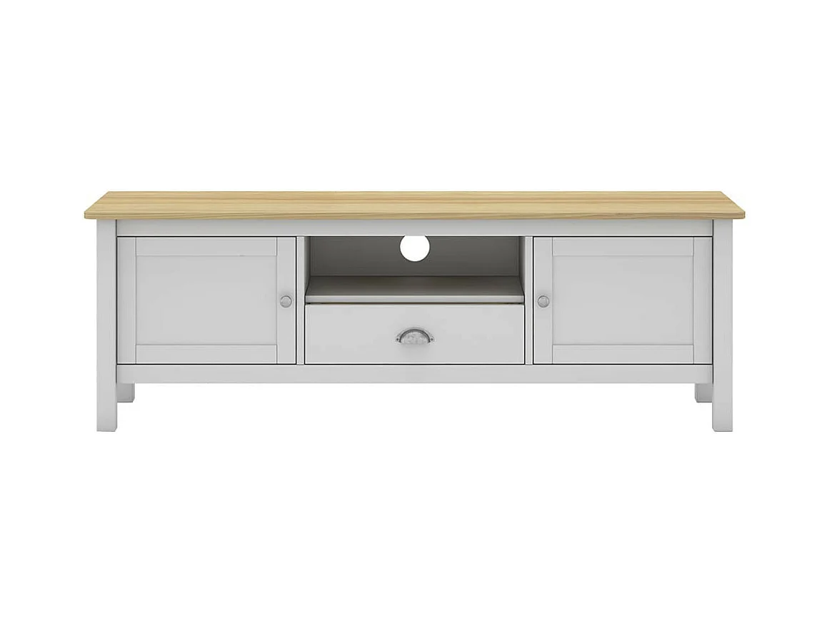 BASCO - Meuble TV 2 Portes 1 Tiroir en Pin Massif Naturel et Blanc