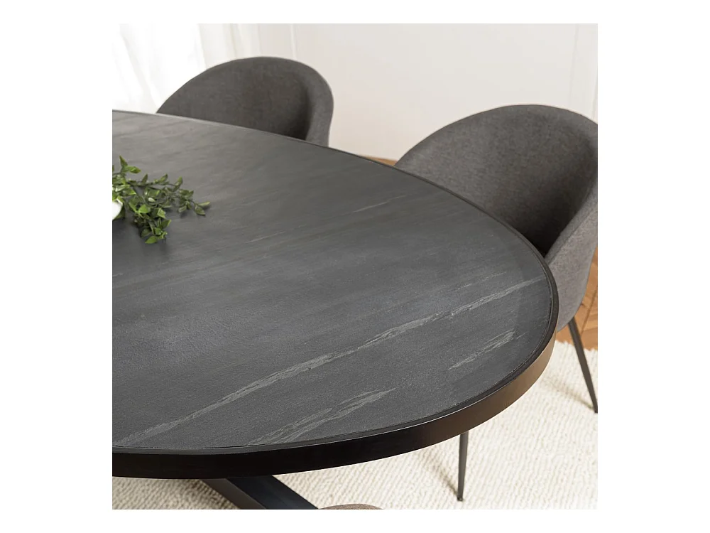 BASILE - Table à manger 220x110cm plateau noir effet pierre