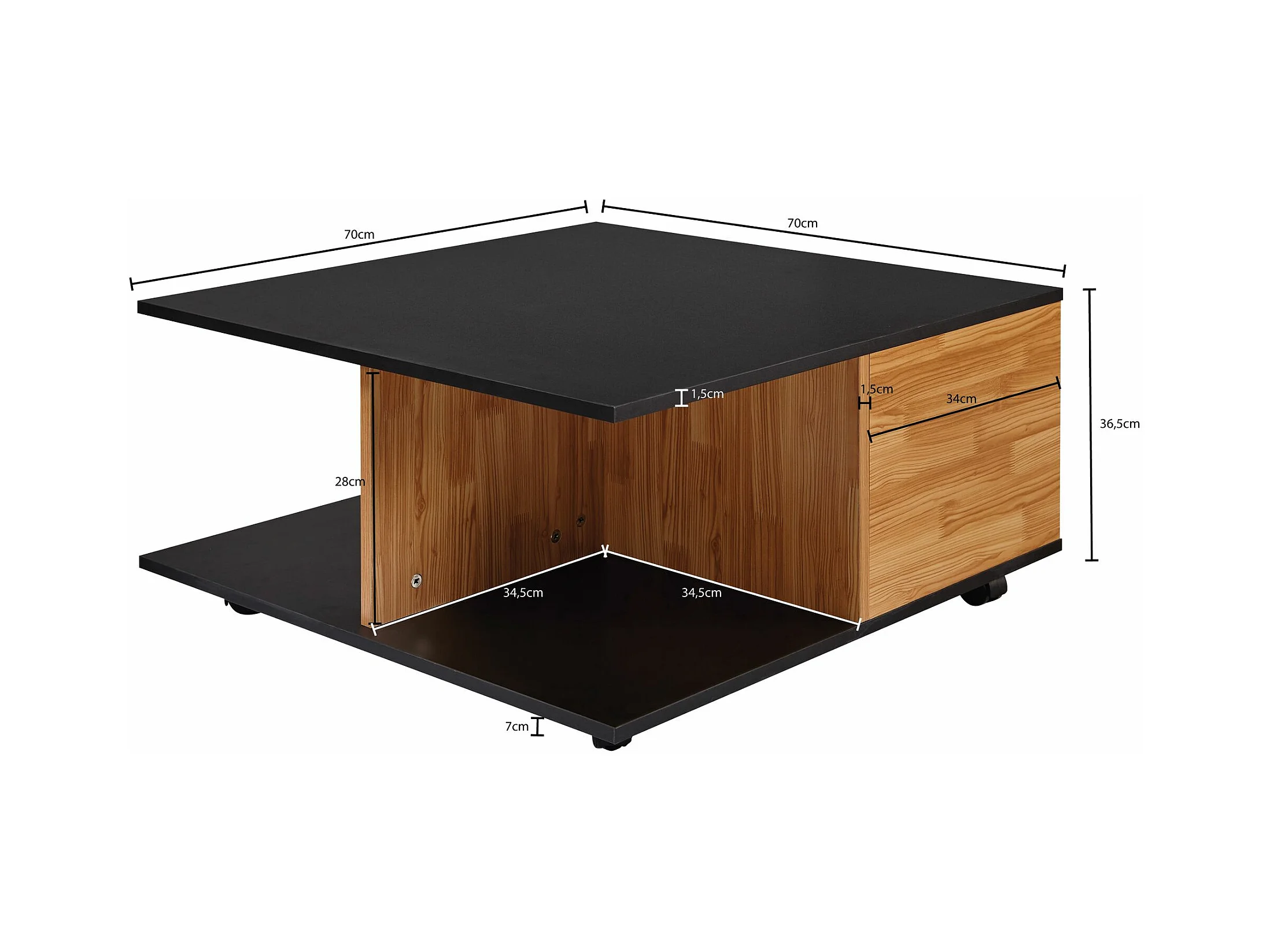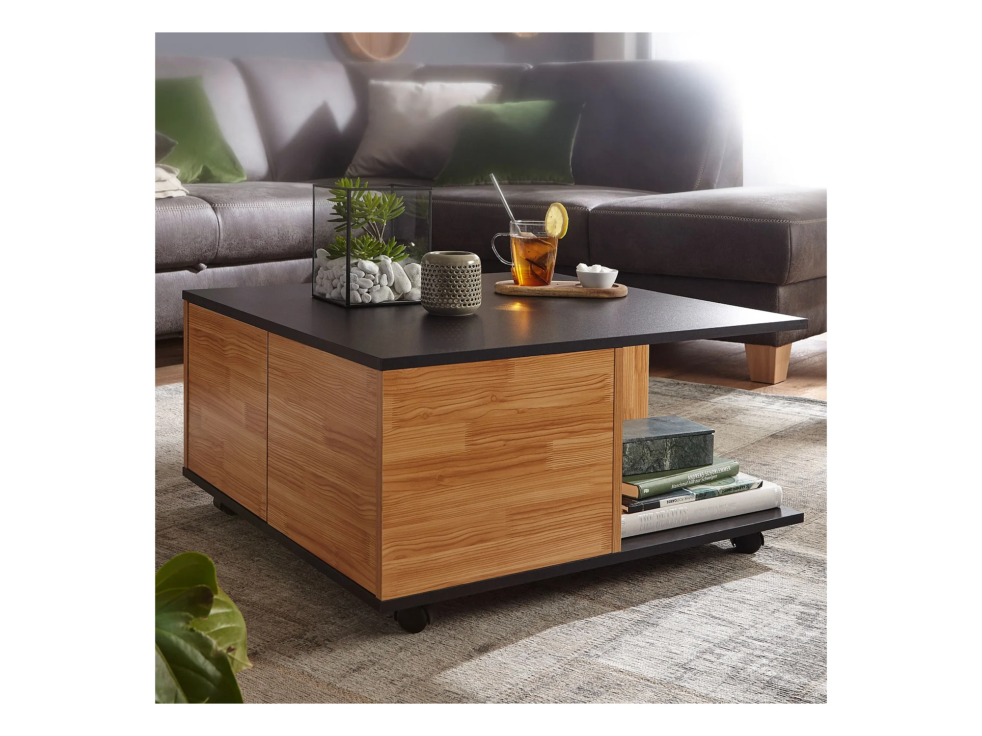 basse design cm anthracite / chêne sable | Table de salon avec 2 tiroirs | Table basse à roulettes | Table à 2 compartiments