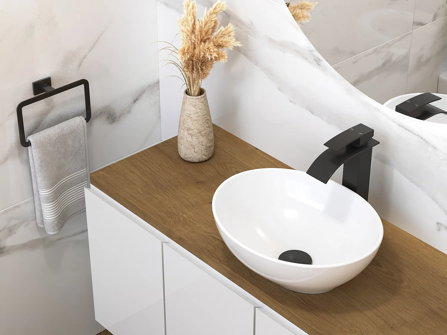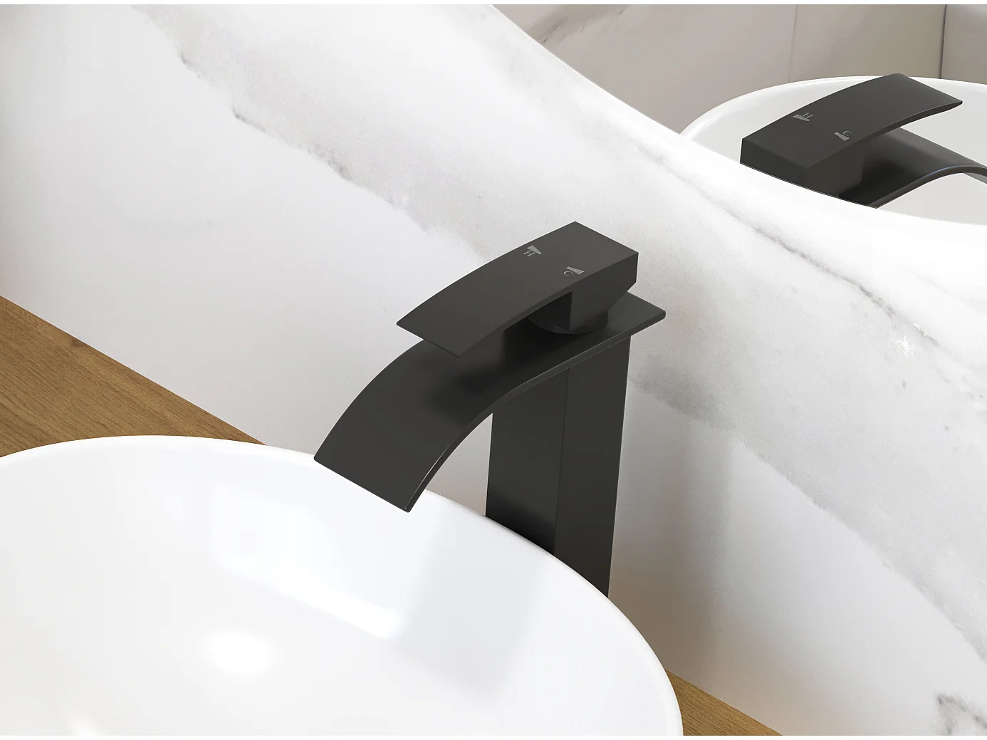 BATERIA UMYWALKOWA WODOSPAD KASKADA WYSOKA KRAN DO ŁAZIENKI CZARNA ELVA
