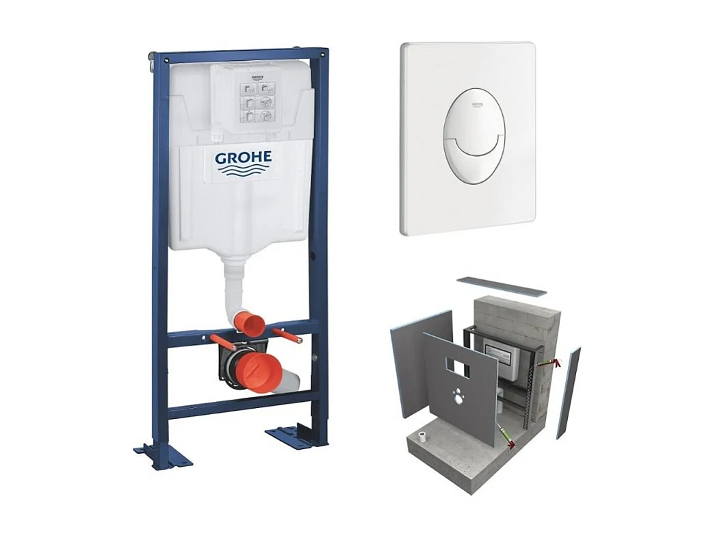 Bati support GROHE Solido plaque blanche + habillage WEDI I-Board